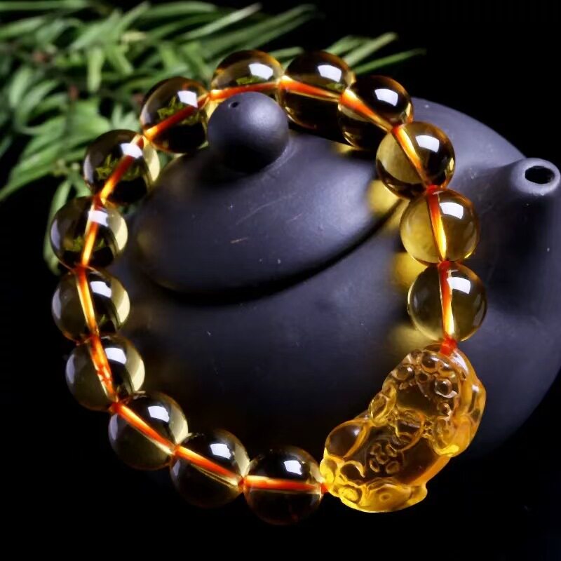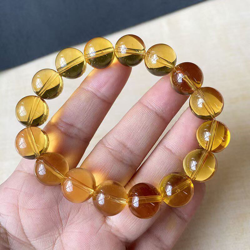 仿黄水晶手链女黄色水晶珠子正品散珠男士手串情侣水晶手饰