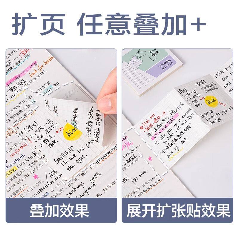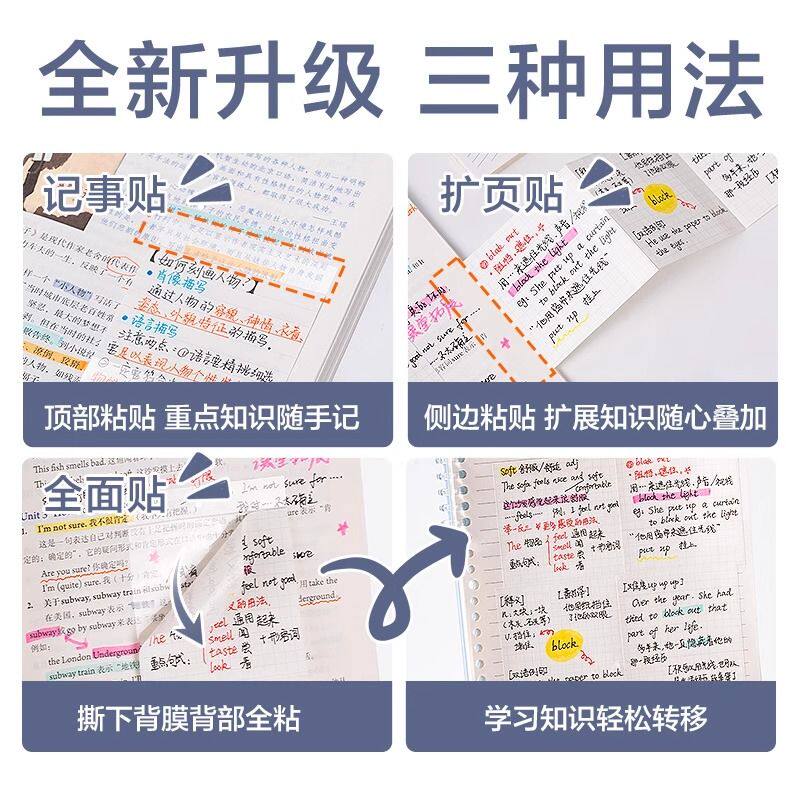任意扩张贴便利贴不遮挡文字透明可折叠考研小学生用可撕有粘性便签贴纸初高中生记笔记贴订正错题办公便利贴