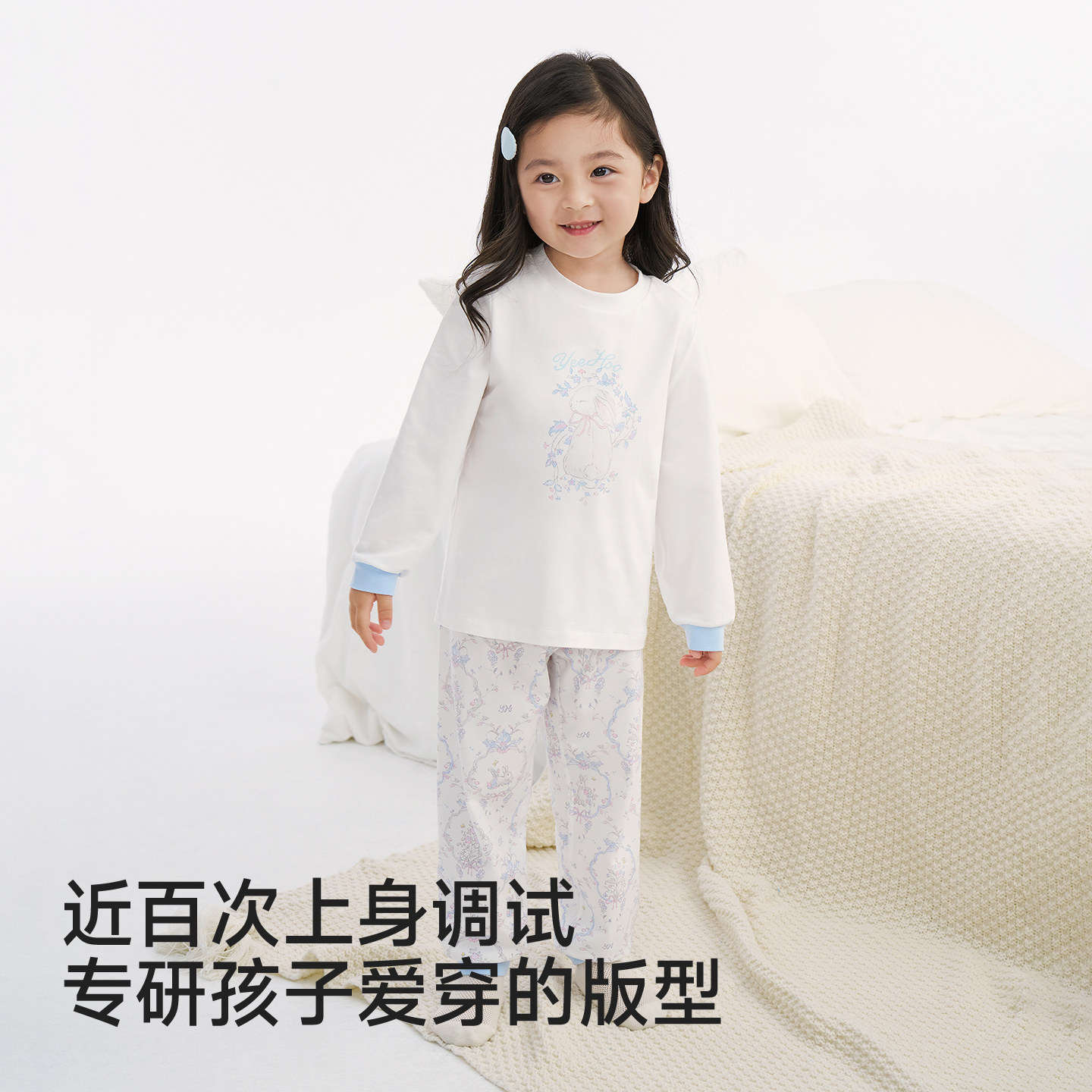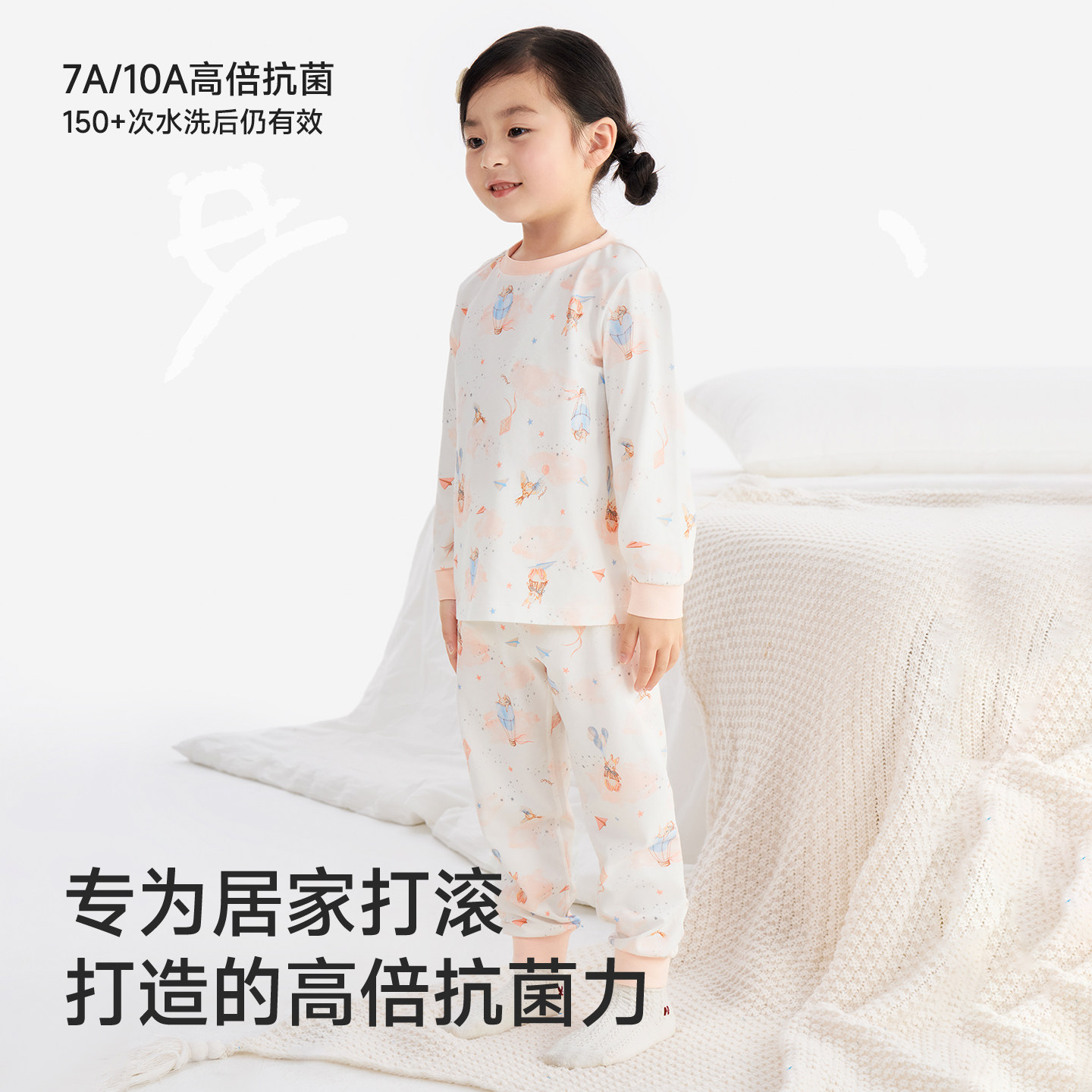 爱慕儿童套头长袖家居服套装/马甲男女童印花T恤裤子宽松睡衣新款