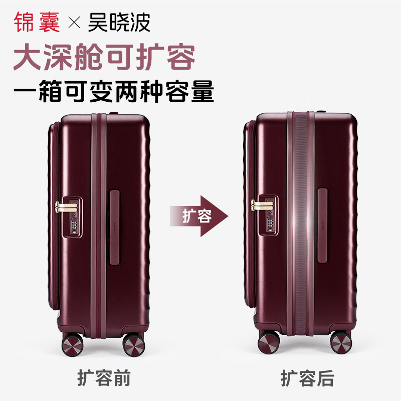 [吴晓波联名扩容箱]卡拉羊x锦囊前开门可扩容商务行李箱鎏金板材