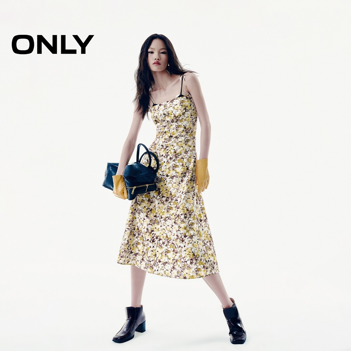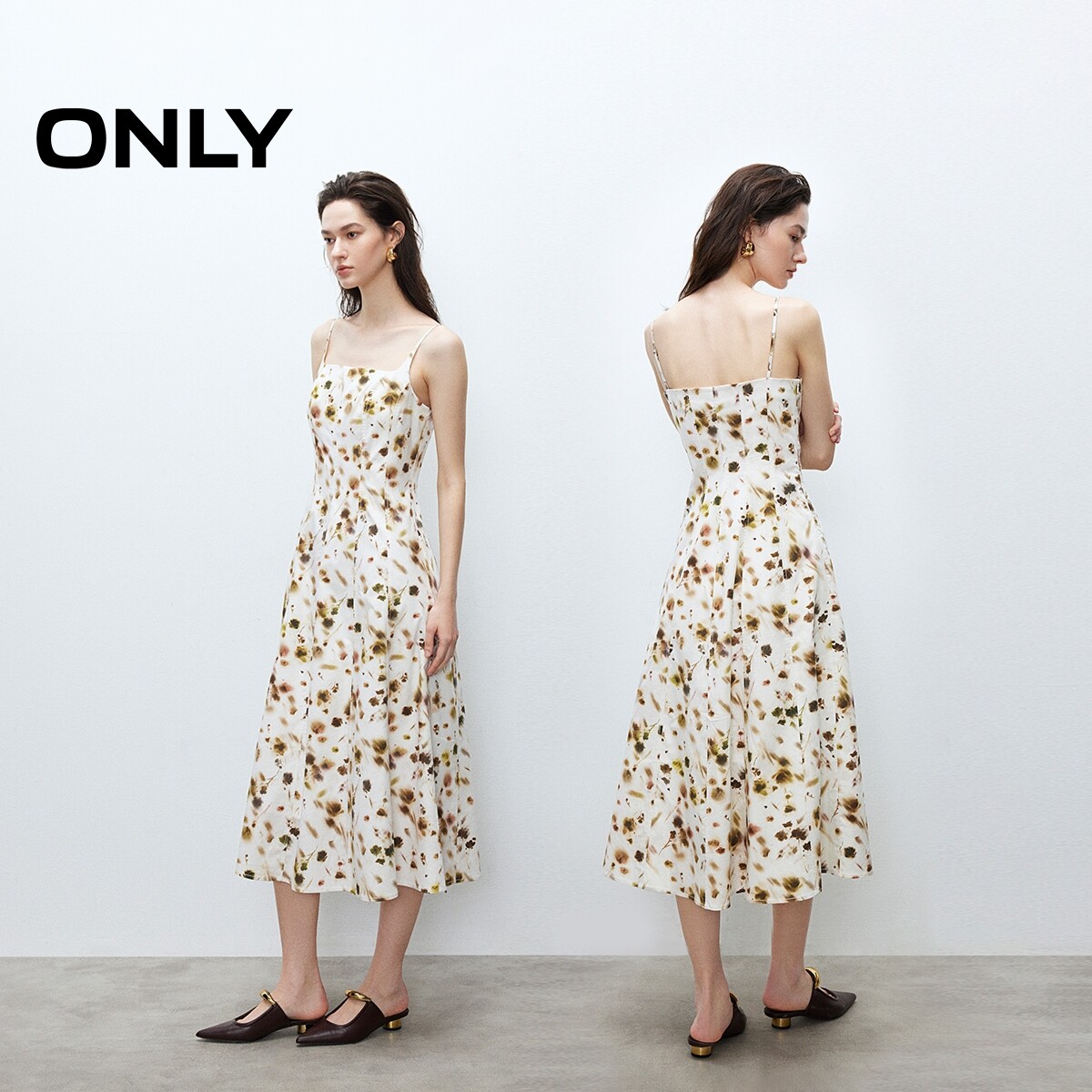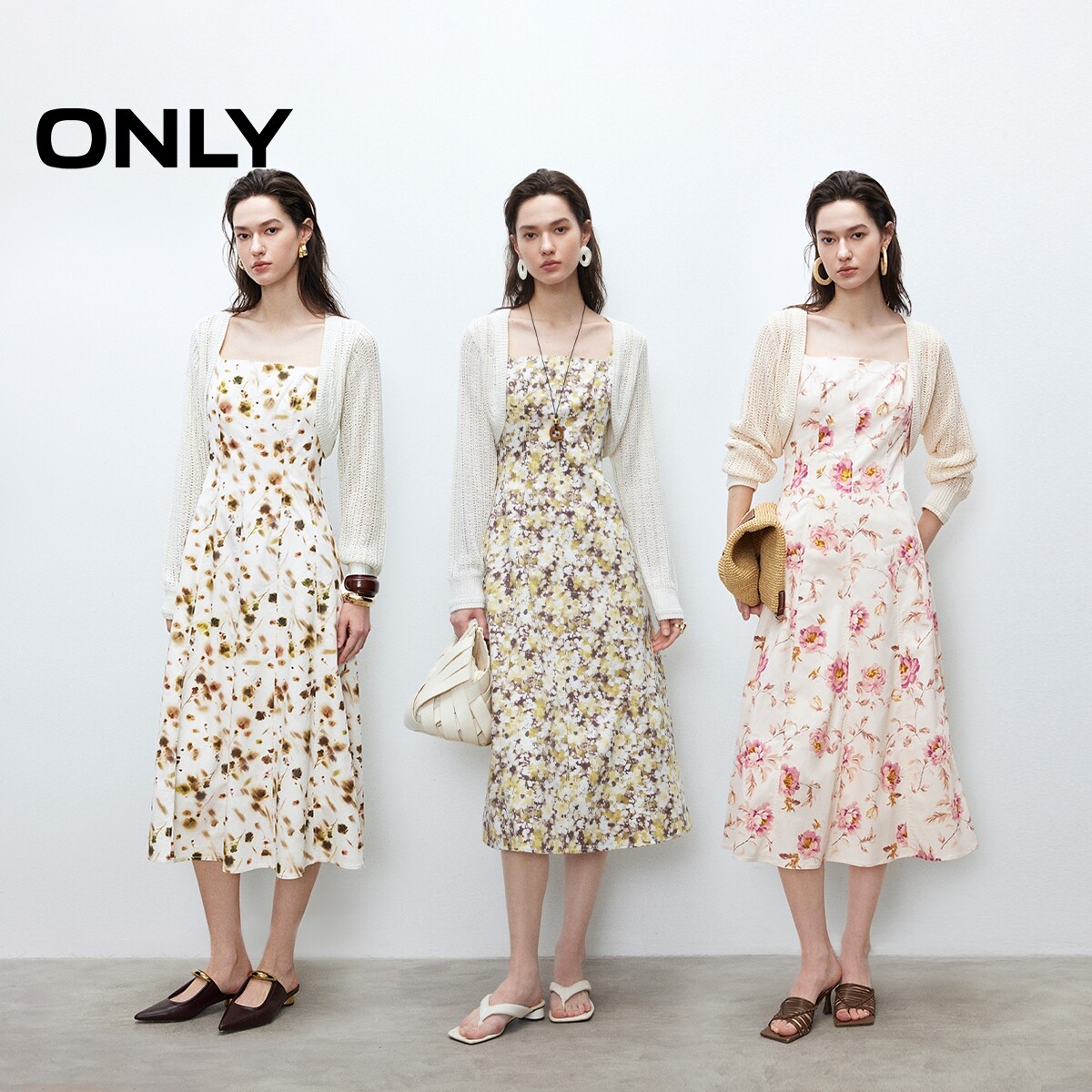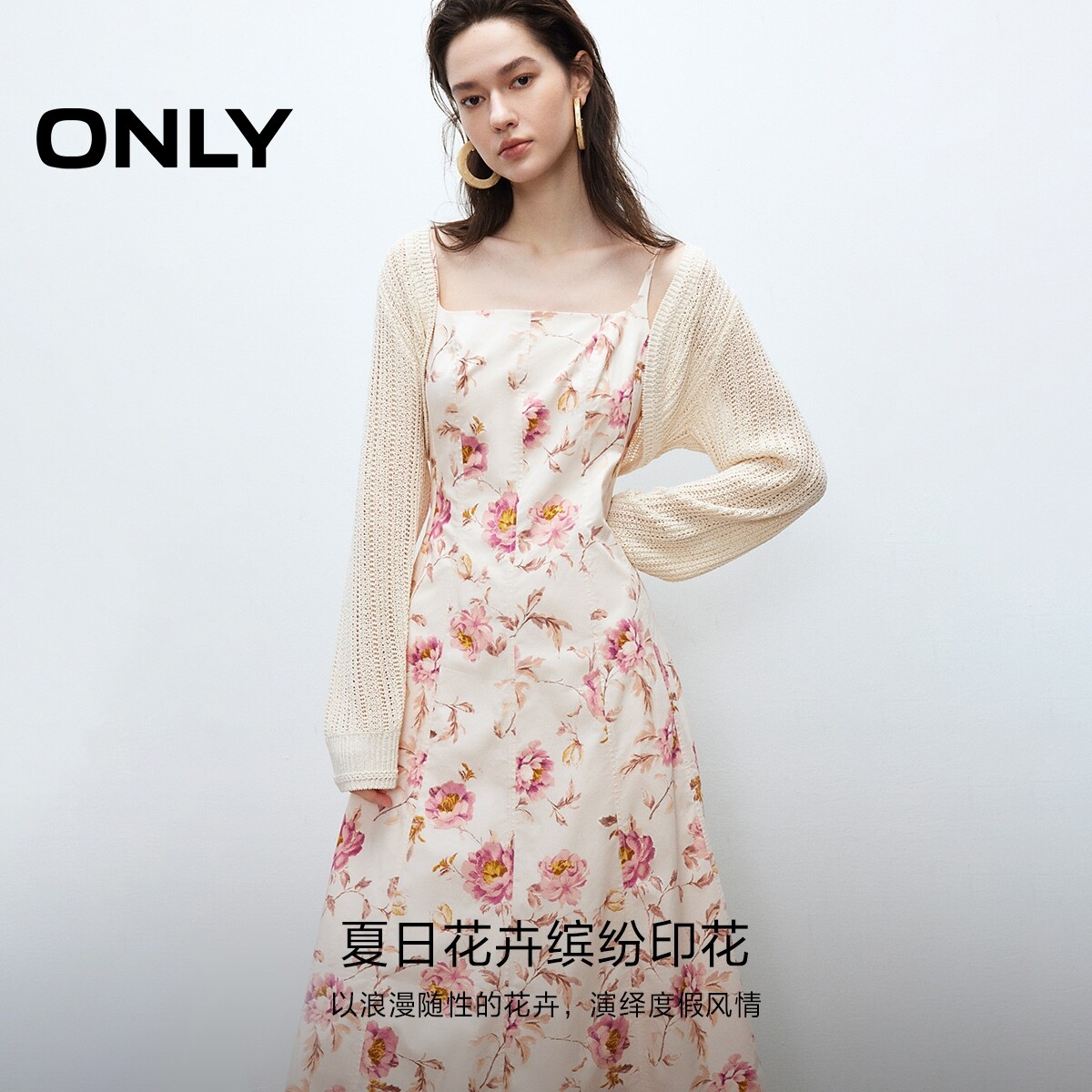 【ONLY奥莱】春季清新甜美镂空针织罩衫碎花吊带长裙套装连衣裙女