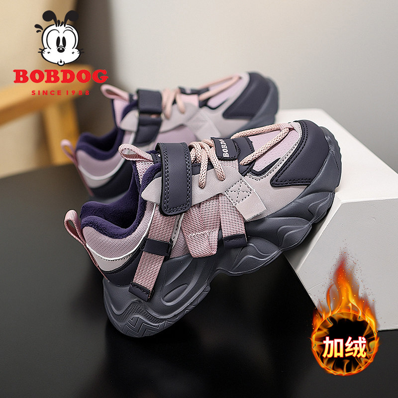 巴布豆女童棉鞋2025秋冬季新款保暖加绒冬鞋二棉儿童运动鞋子防水