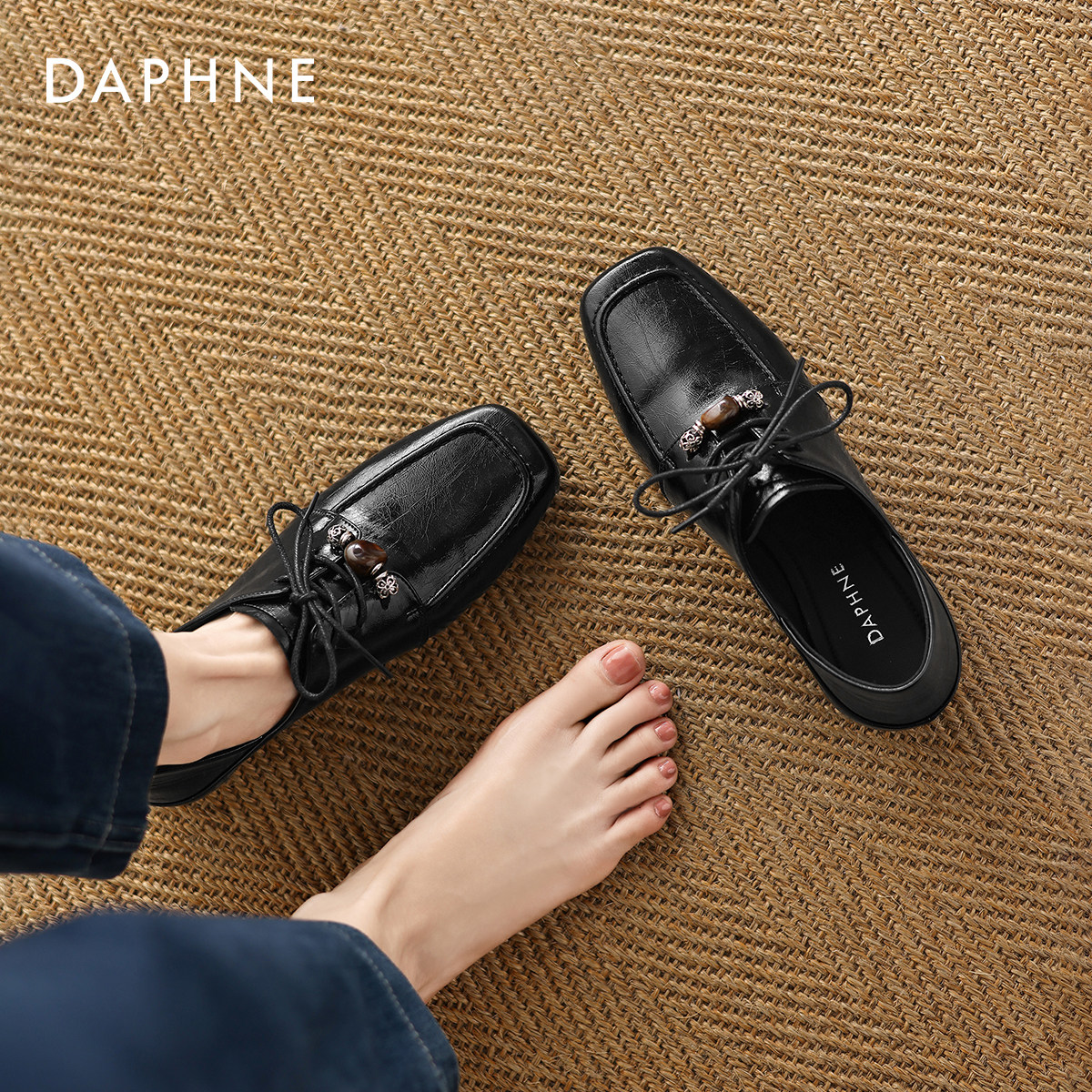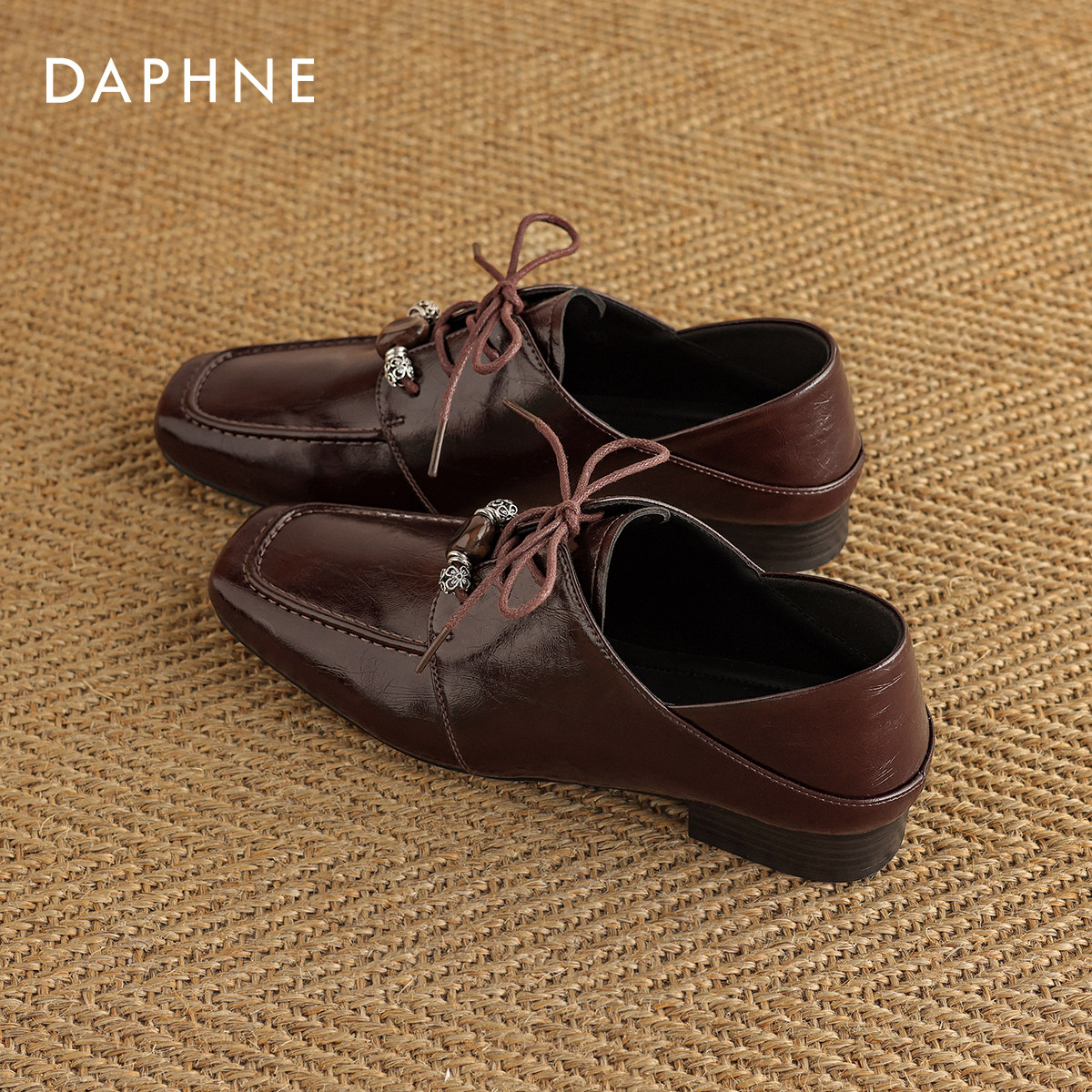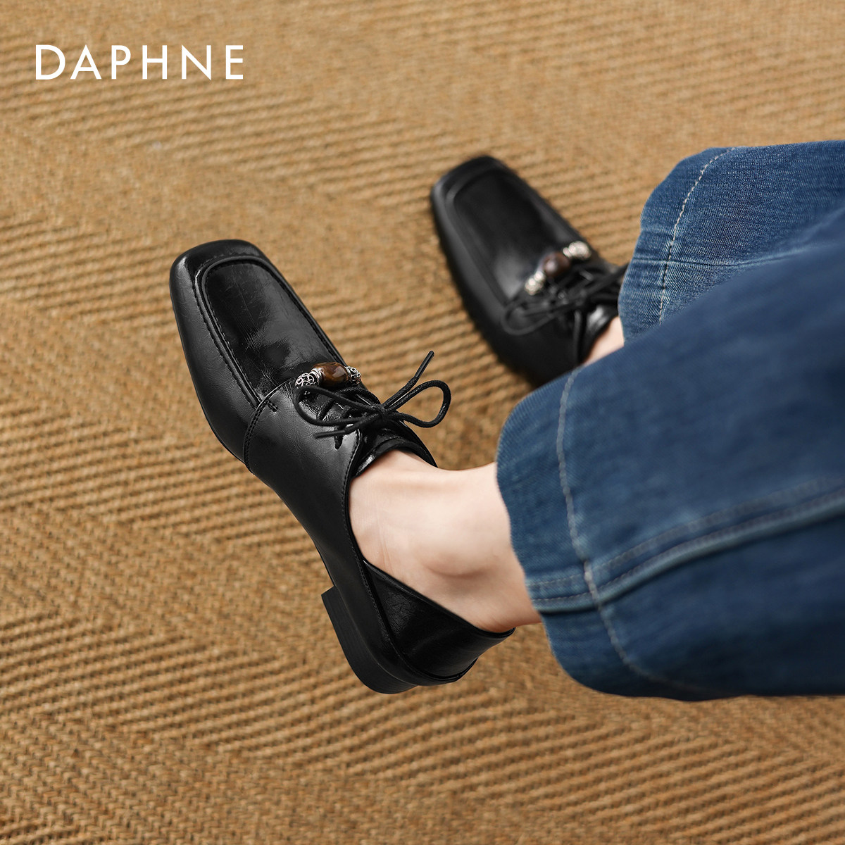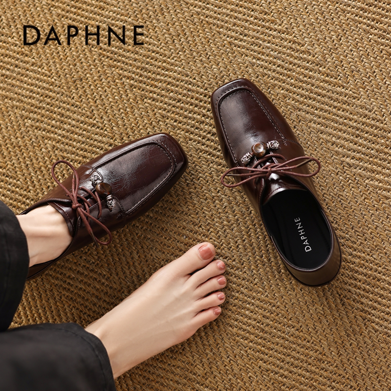 达芙妮德比鞋女2026新款春通勤深口皮鞋粗跟布洛克乐福鞋软底单鞋