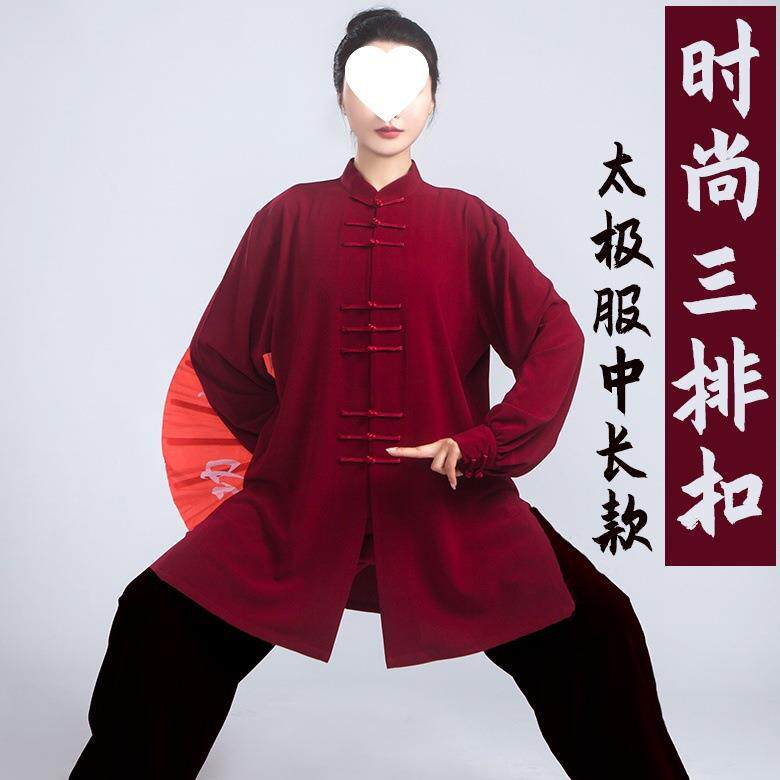 新款太极服女新款太极拳练功服男八段锦武术套装弹力棉中长款