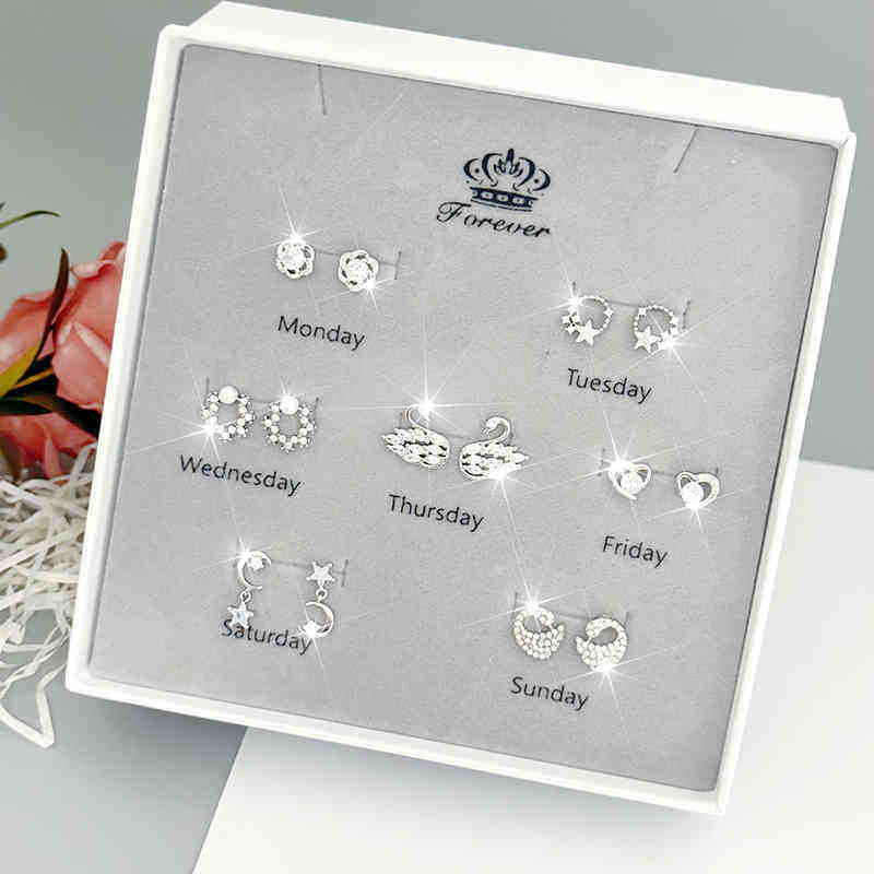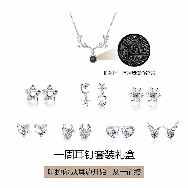 一周星期耳钉女生纪念日生日礼物送女友老婆s925银耳环高级感耳饰