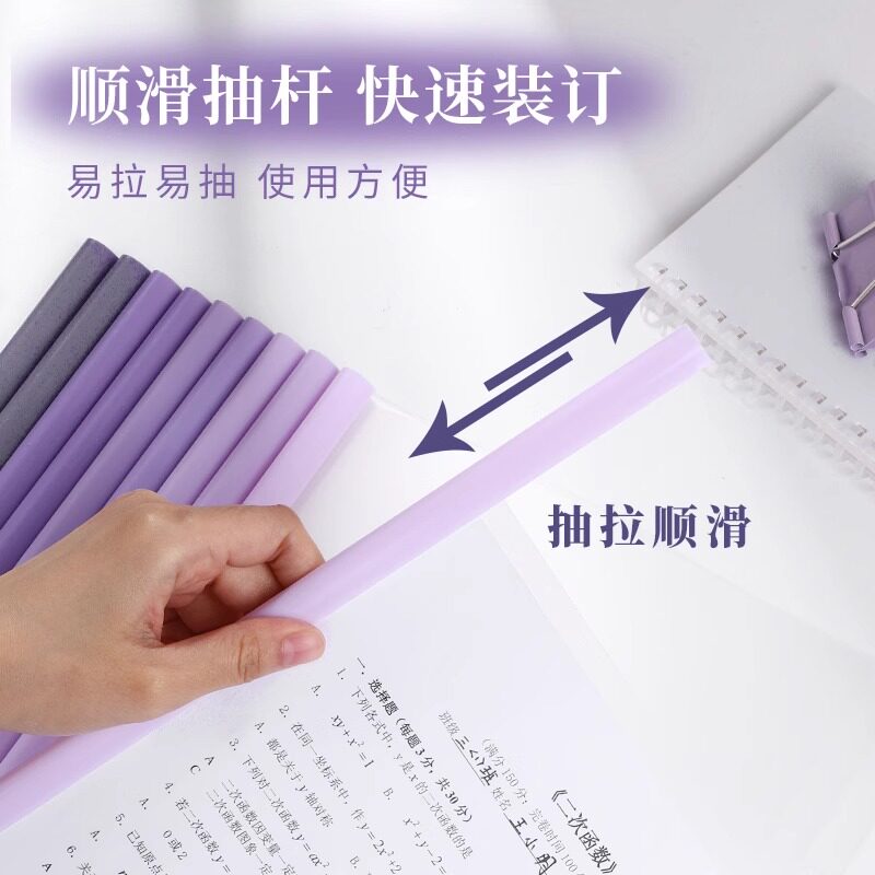 A4纸抽杆夹文件夹加厚抽拉杆夹透明固定学生试卷夹书皮书夹档案夹