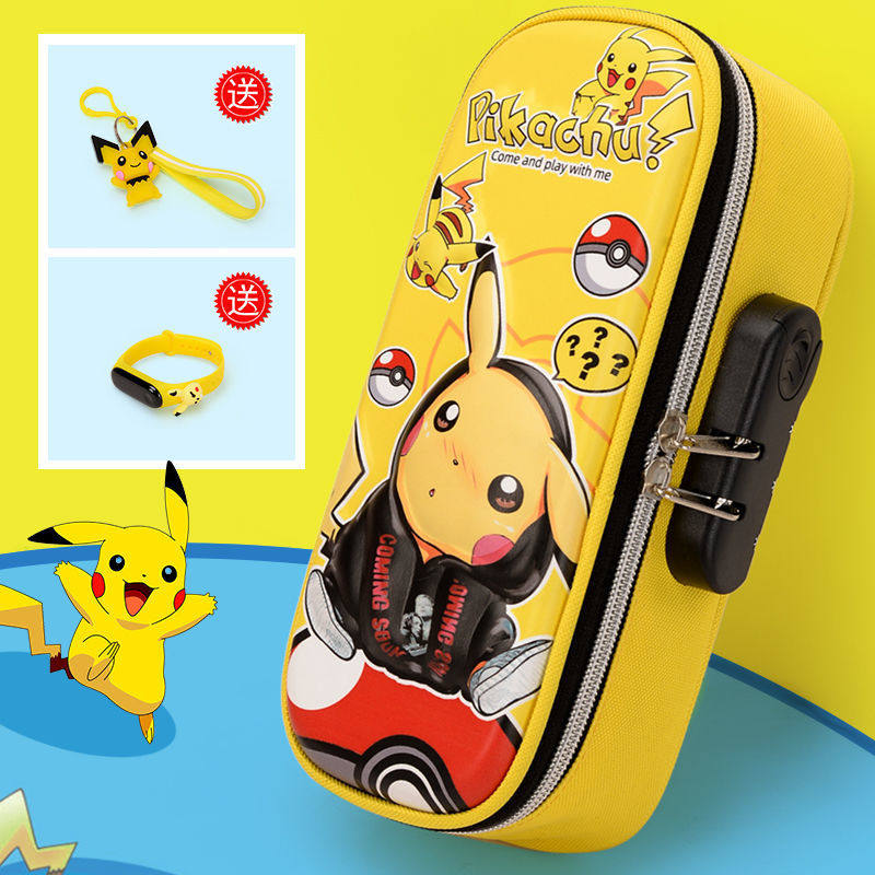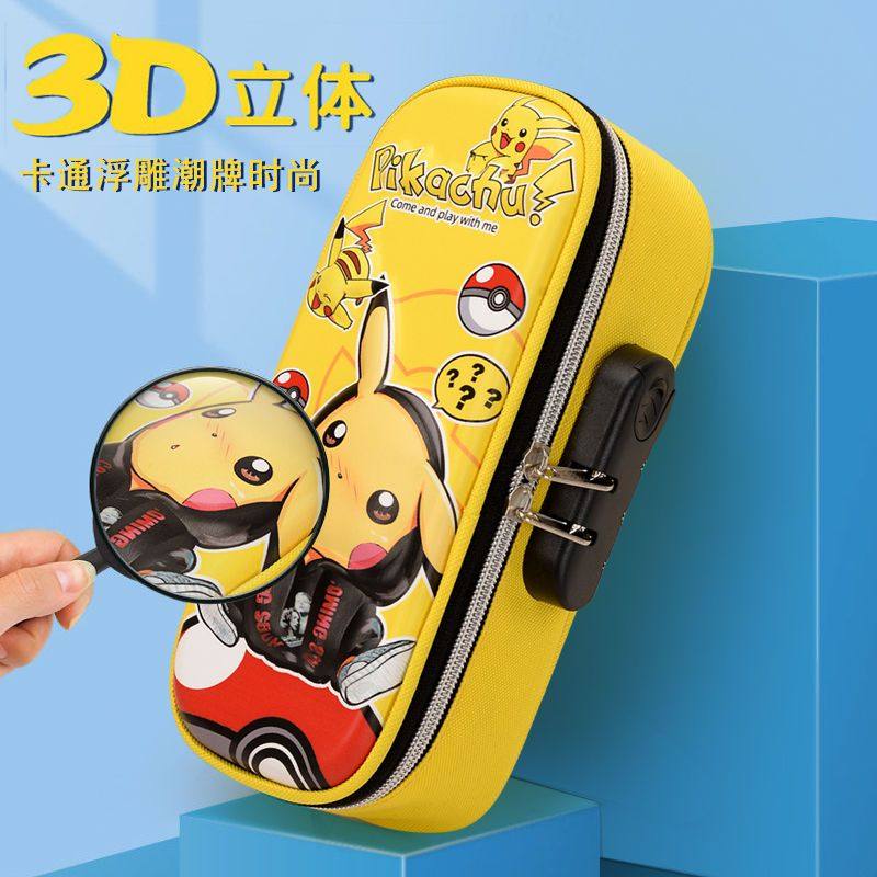 初中生多层大容量文具盒男孩小学生女多功能皮卡丘密码锁笔盒笔袋