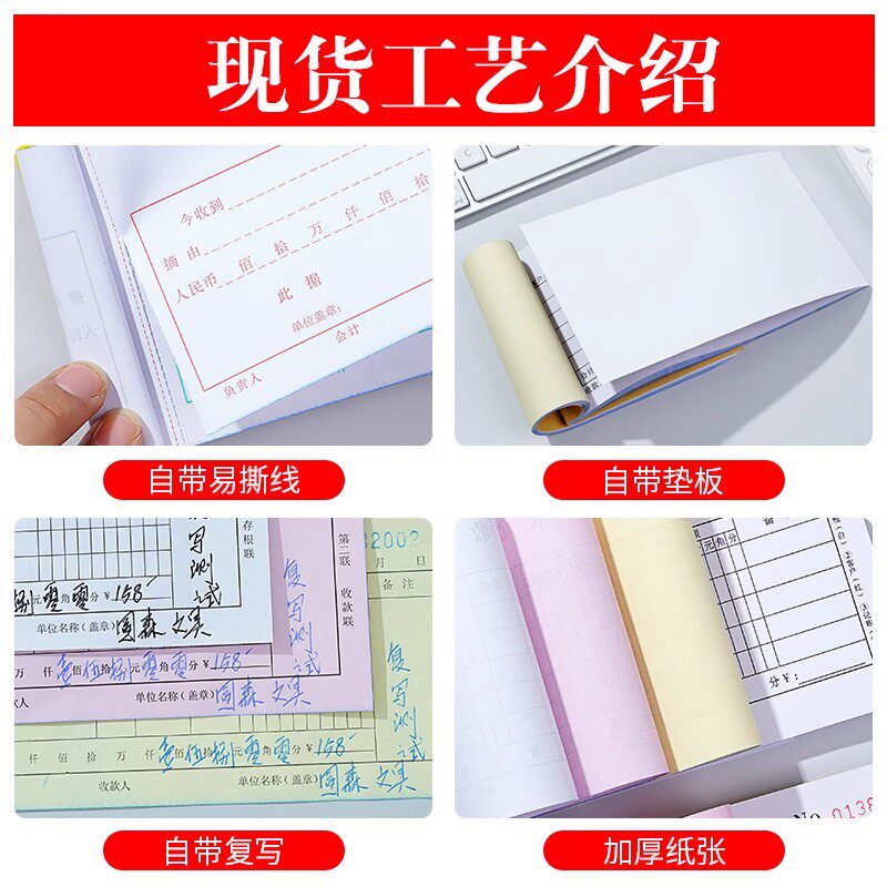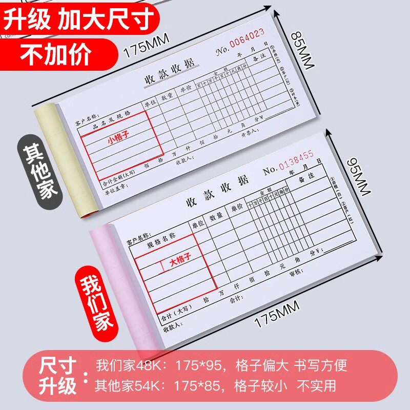 50本装收款收据本订制定做二联三联收据单两联单收票据维修财务幼儿园培训驾校装修医院餐饮收据定制单据