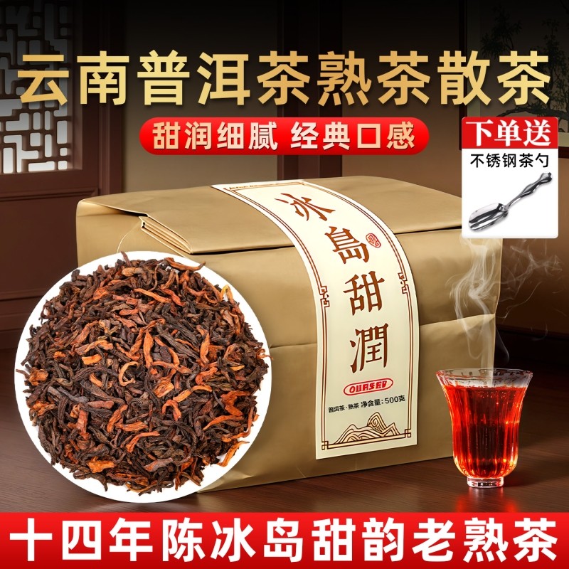 云南冰岛古树普洱老熟茶十年以上宫廷老料经典熟普口粮茶散装茶叶