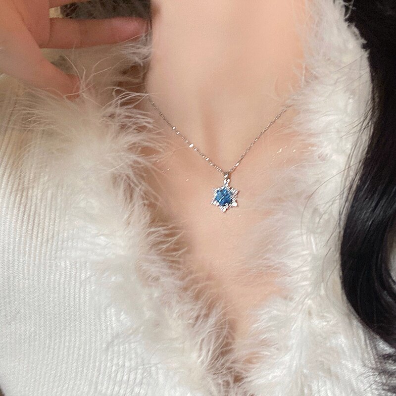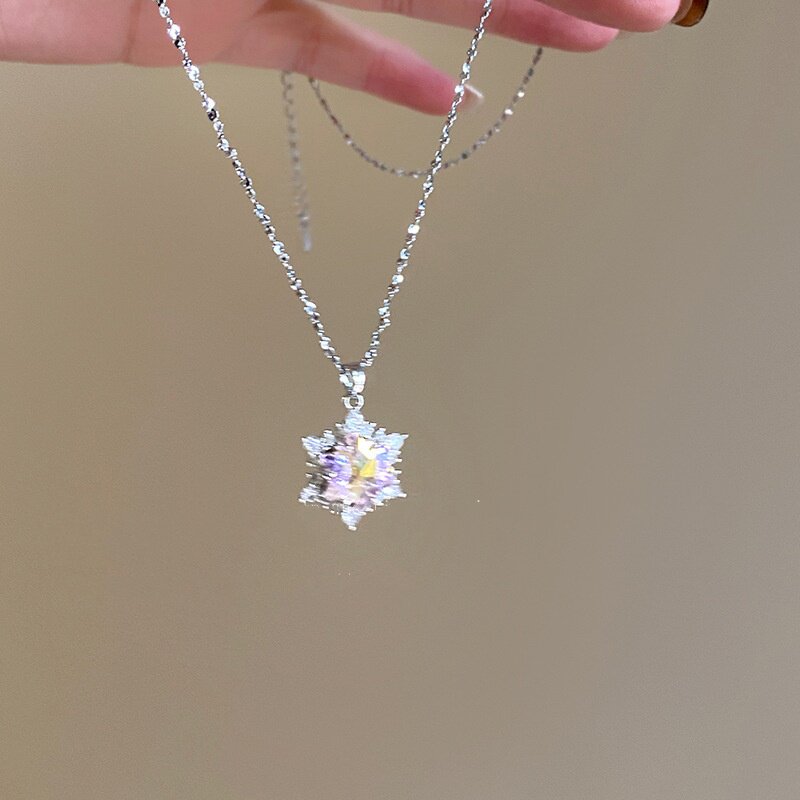 雪花锆石吊坠锁骨链女时尚个性简约通勤配饰秋冬搭配项链毛衣链潮