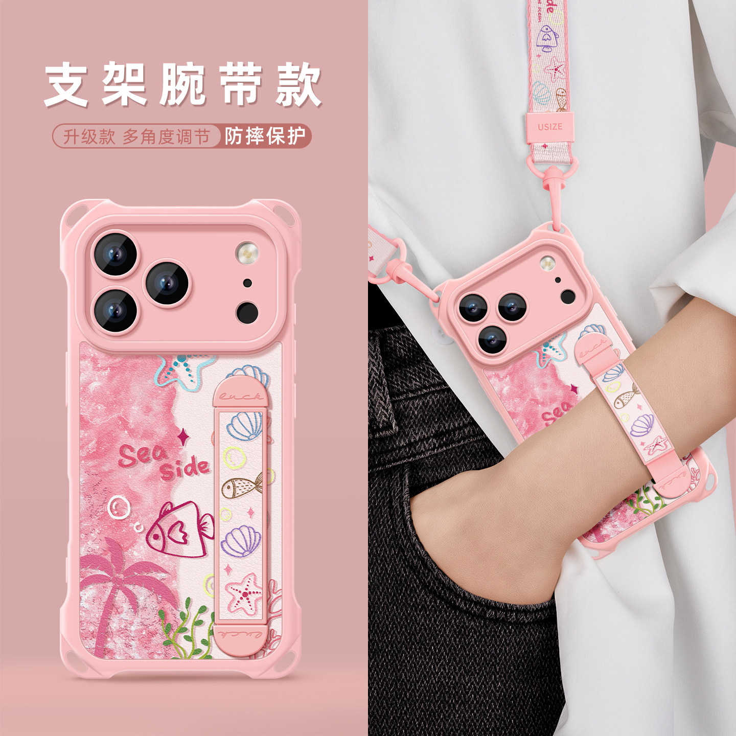 适用iphone17promax手机壳苹果17套16链17pro腕带挂绳16pro全包夏威夷小鱼新款15高级pro防摔14硅胶14pro便携