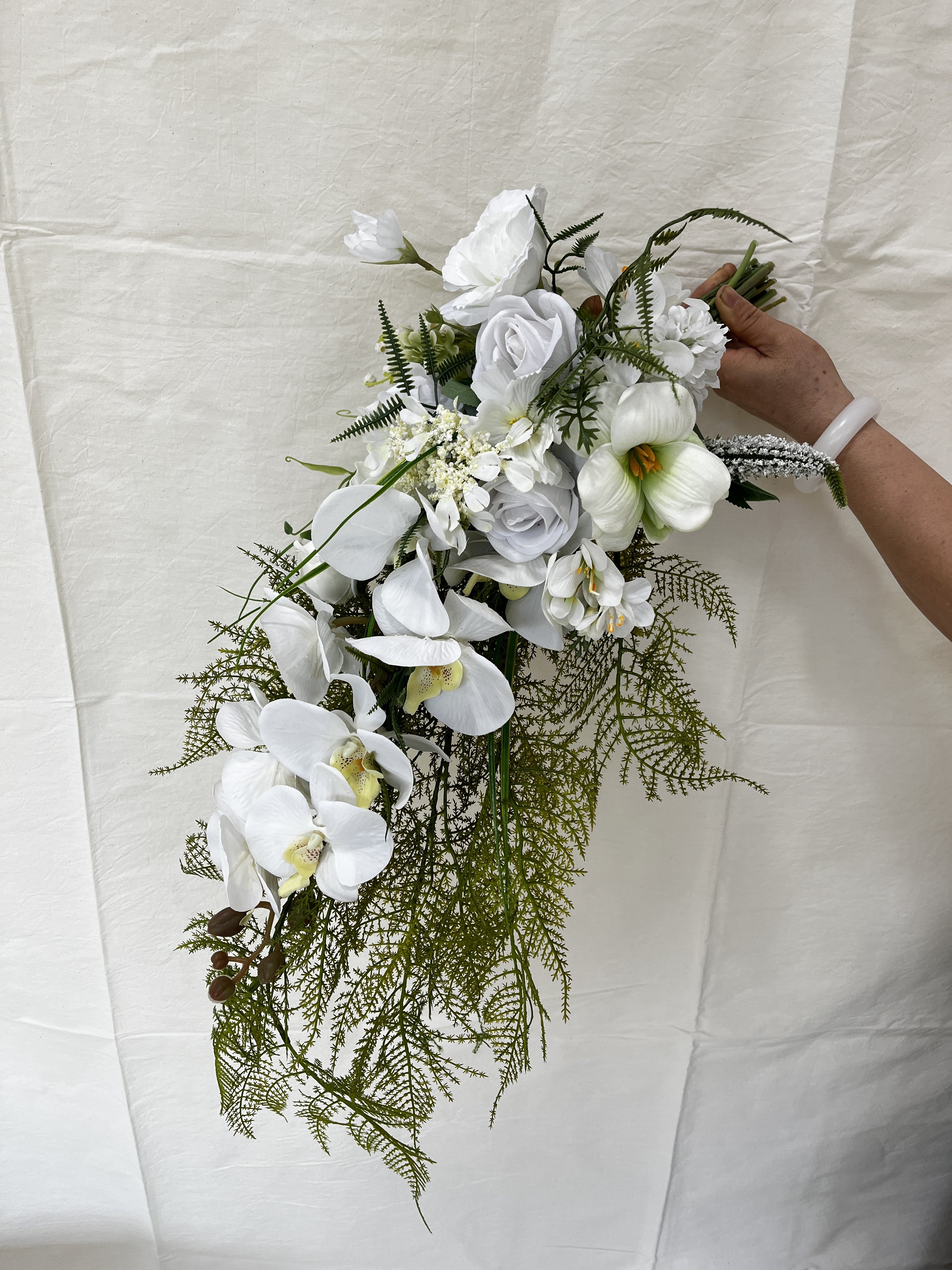 森系韩系新娘结婚手捧花白色仿真花领证花束文竹浪漫旅拍婚礼道具