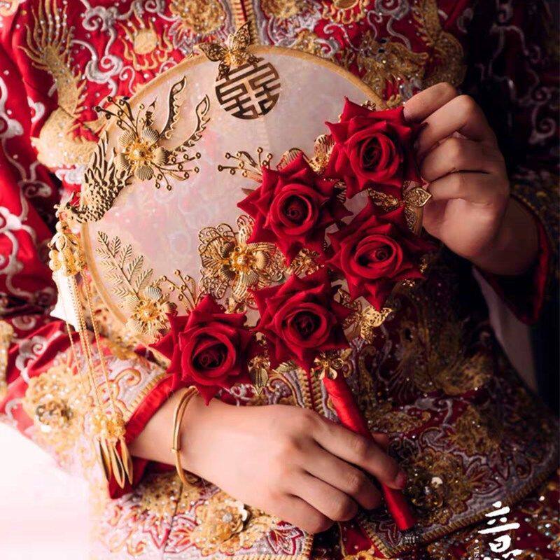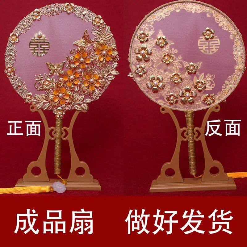 中式团扇手捧花 婚礼新娘喜扇龙凤褂宫扇圆扇秀禾服团扇diy材料包