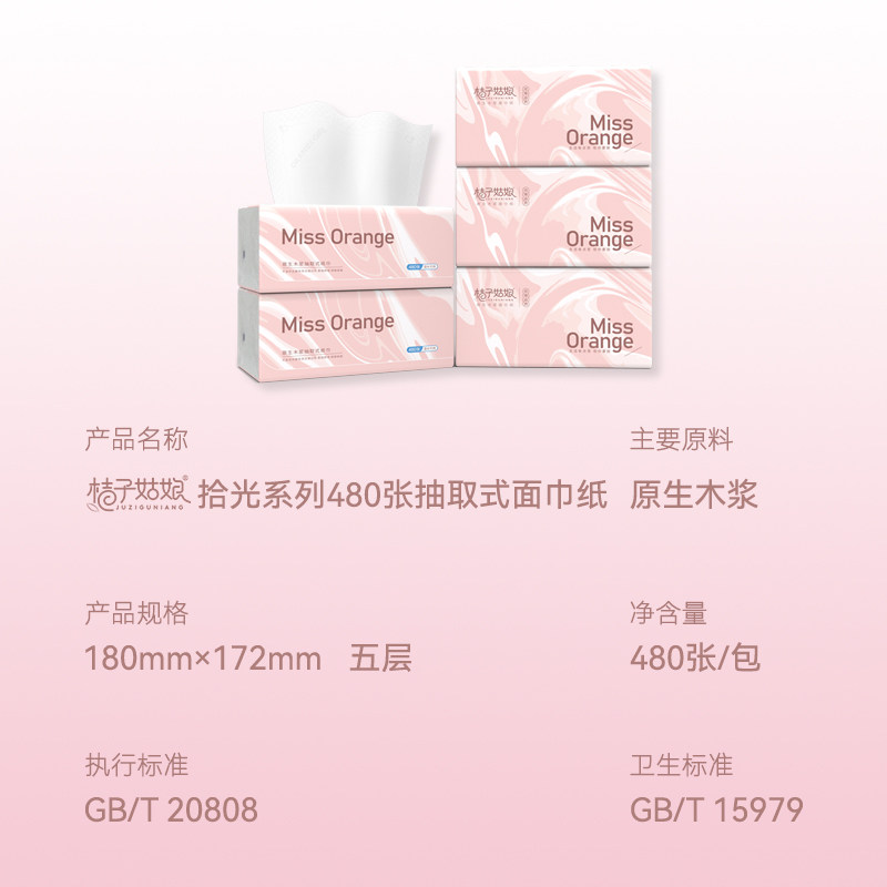 桔子姑娘抽纸大包5层96抽原生木浆纸巾餐巾纸抽整箱批发家庭装
