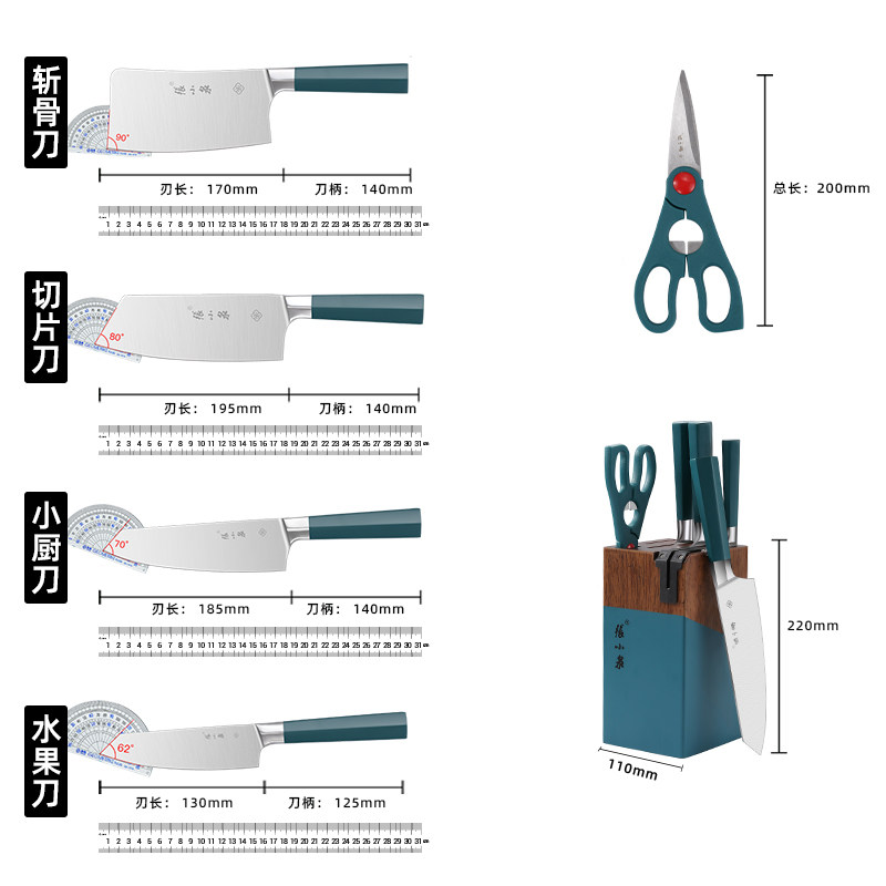 张小泉刀具套装厨房切肉砍骨菜刀组合全套家用六件套厨具官方正品