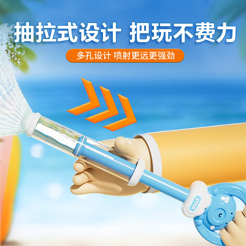 水枪海边单管水枪吸水很快速沙滩游玩儿童玩具抽拉式双孔戏水游泳