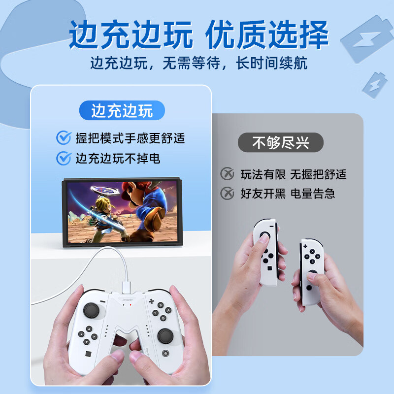 锦读Jemdo适用任天堂switch手柄握把joycon充电握把底座ns2代带壳充电座oled支架二代游戏手柄架连接配件