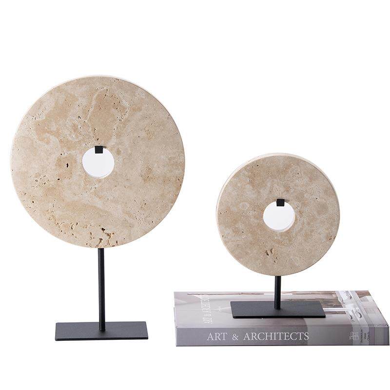 新中式U型几何洞石大理石平安扣摆件样板房玄关书房软装电视柜装