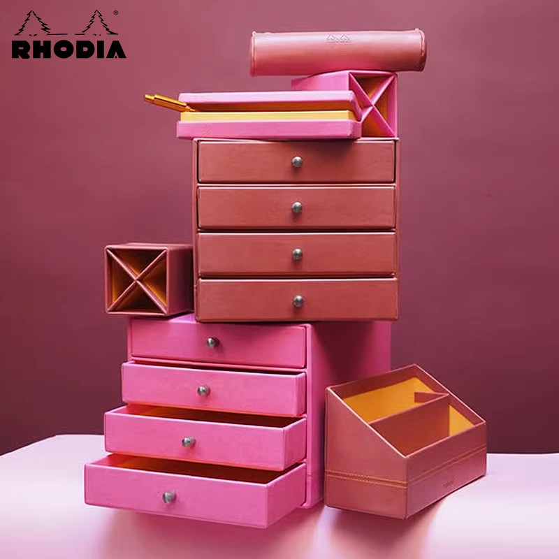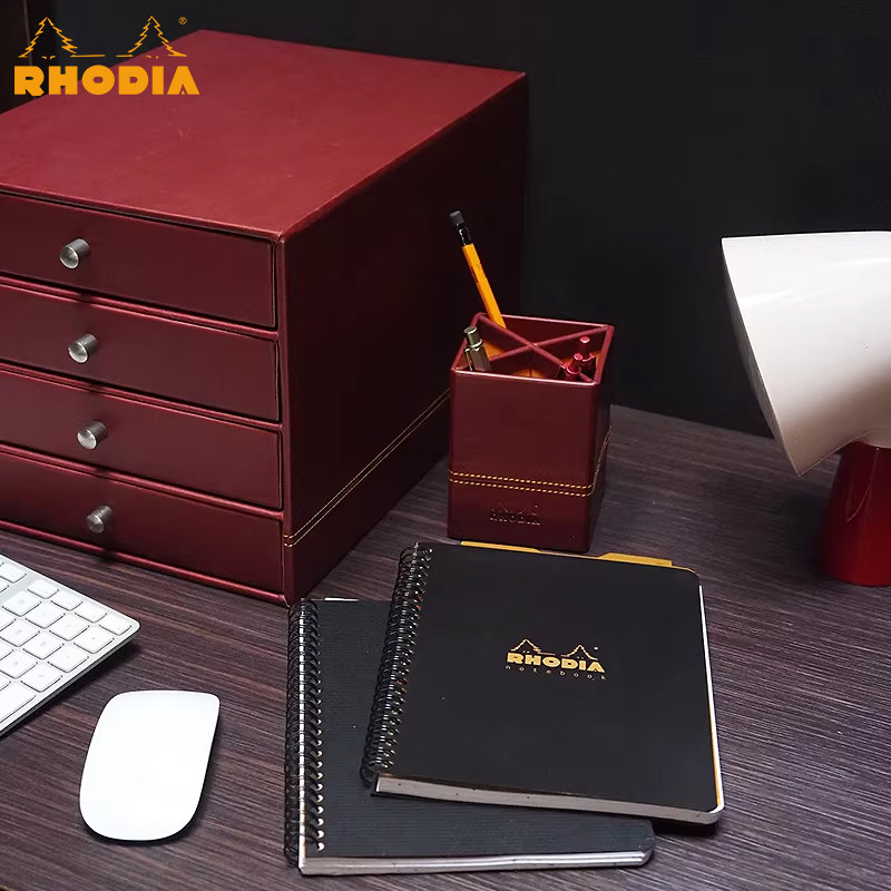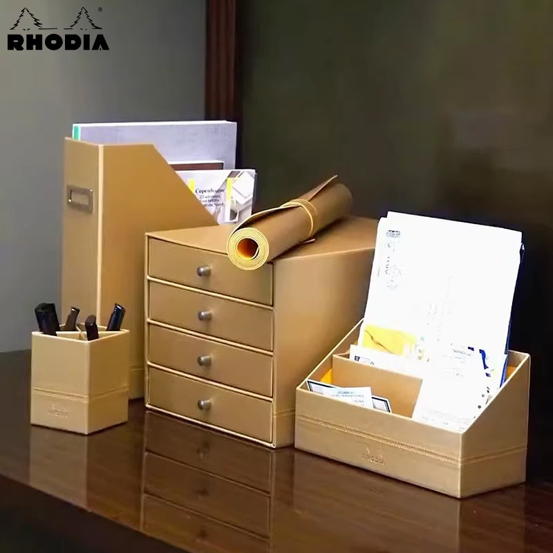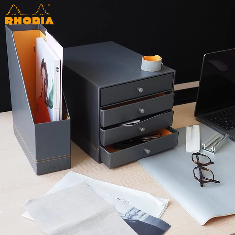 Rhodia法国罗地亚居家办公收纳工具收纳箱 收纳笔文件信件明信片 皮质防污4抽式收纳柜