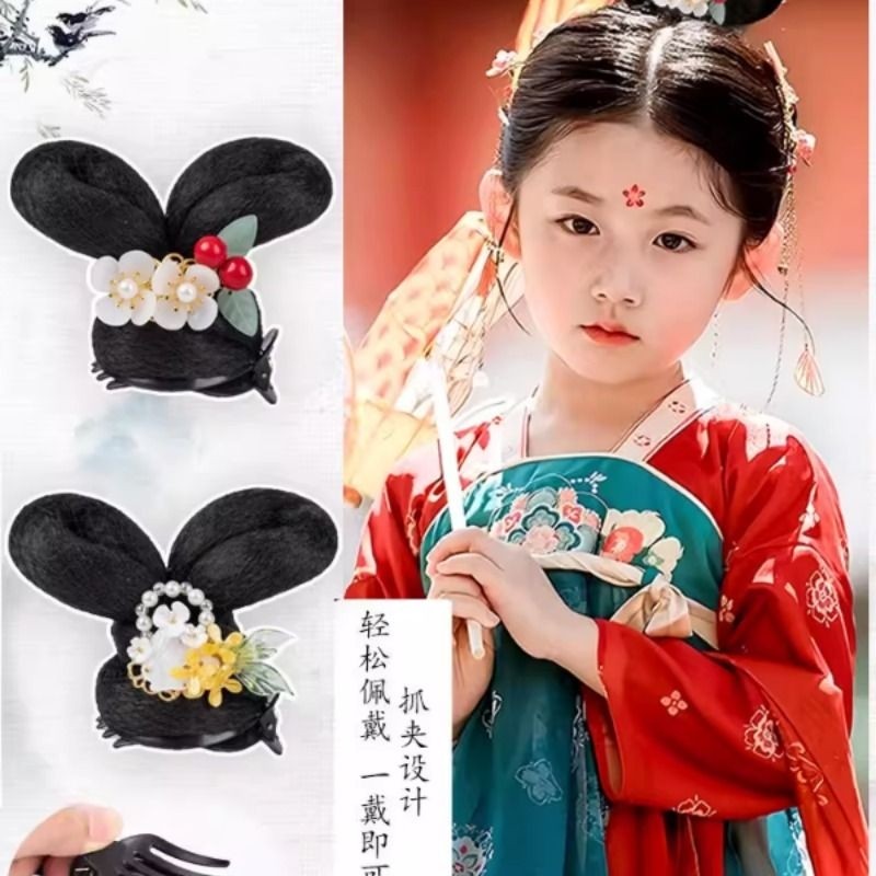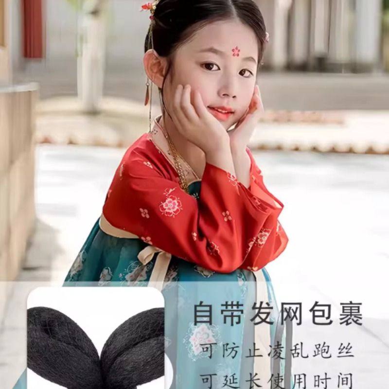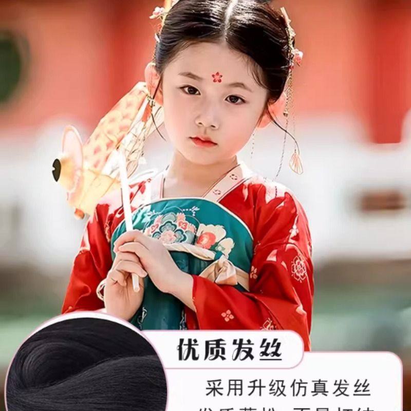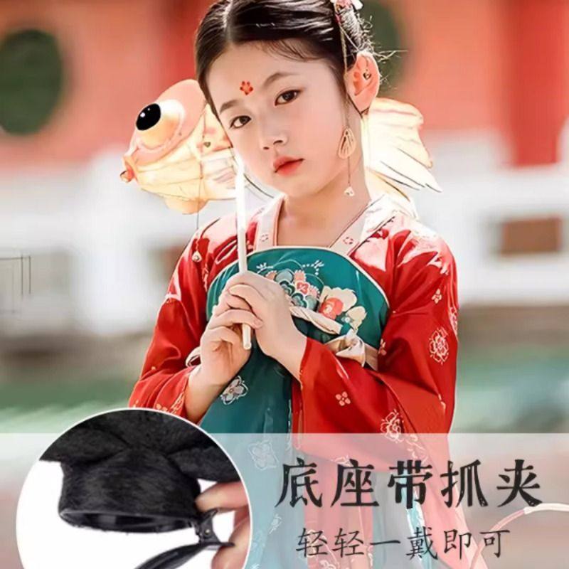 儿童汉服假发古风一体式抓夹发髻女童古装盘发造型发饰垫发包头饰