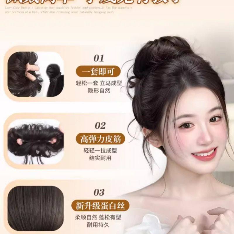 龙须丸子头假发发圈仿真发蓬松增发量千金风盘发神器假发包花苞头
