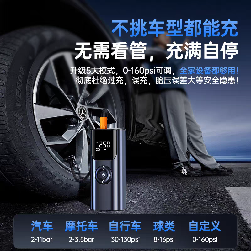 车载充气泵无线便携式高压打气泵汽车轮胎电动打气筒车用带测胎压