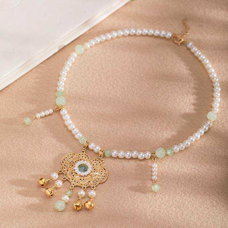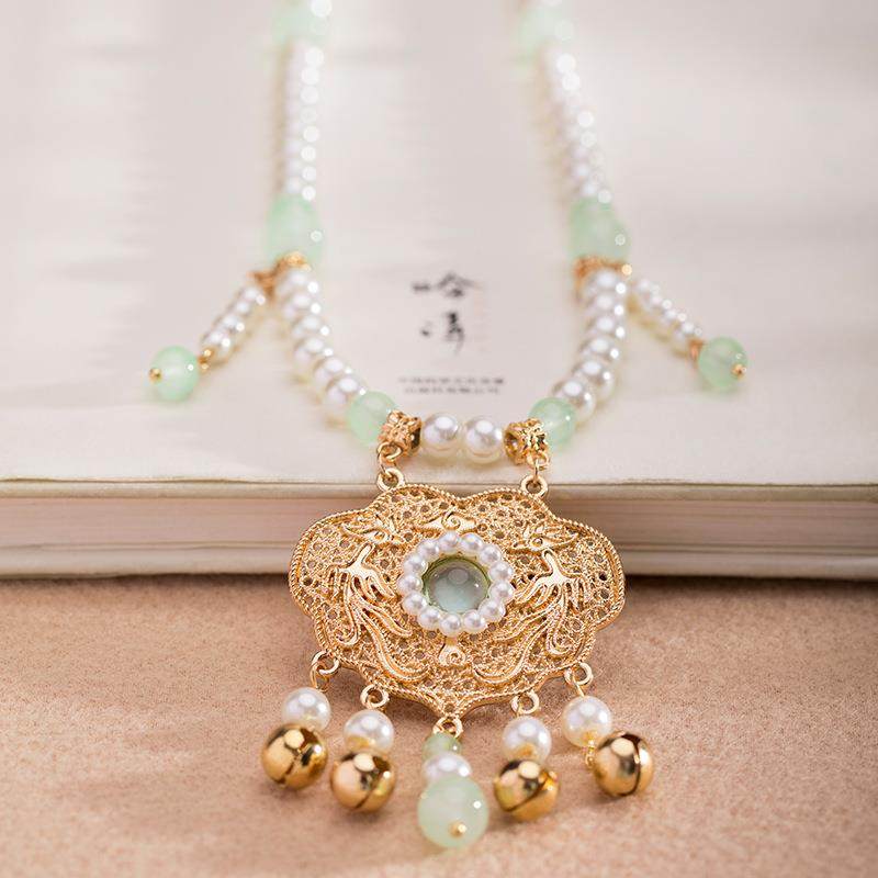 古风儿童汉服项链复古宫廷女童配饰软璎珞珍珠平安锁吊坠TB12.9