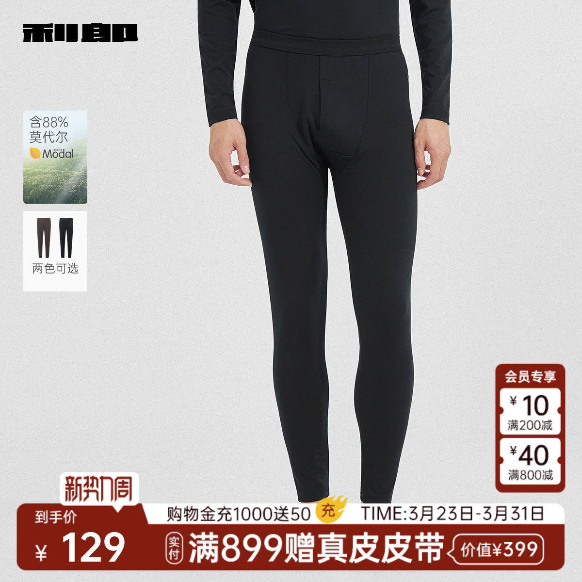 【含莫代尔】利郎官方男士家居裤男士冬季纯色微弹睡裤长裤男