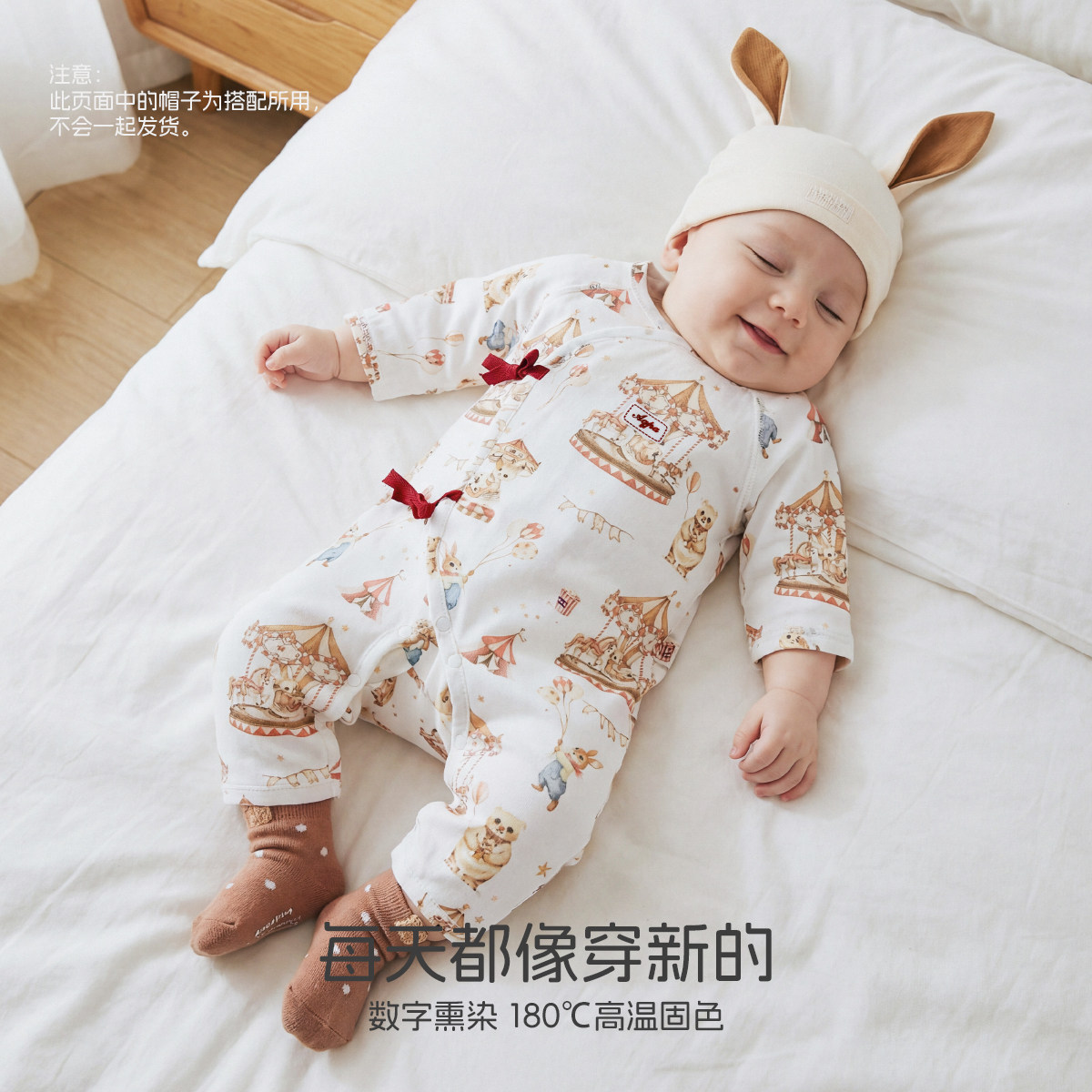婧麒婴幼儿衣服春秋连体衣小月龄纯棉宝宝新生儿早秋长袖外出哈衣