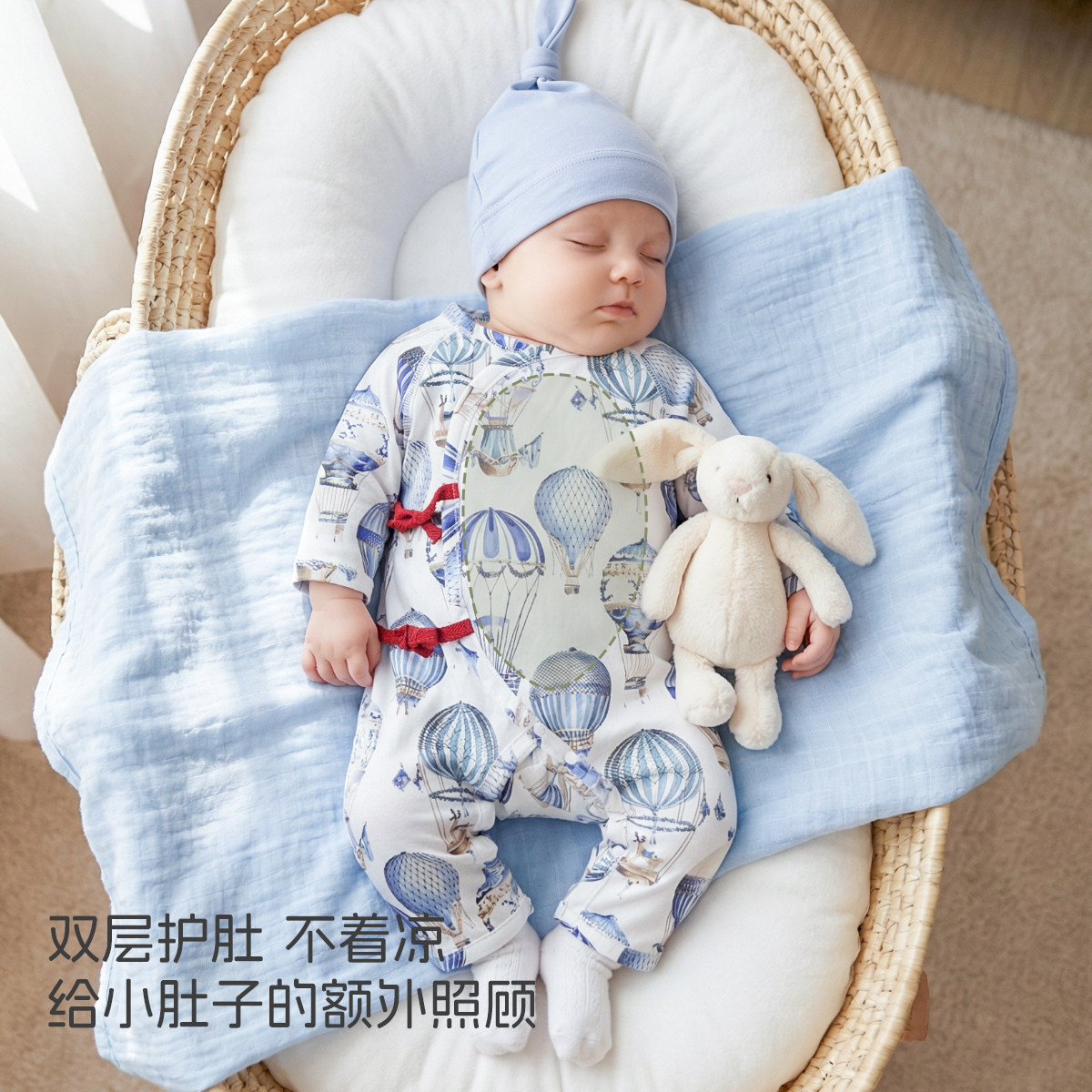婧麒婴儿连体衣春季衣服春装纯棉薄款长袖新生儿宝宝和尚服外出服