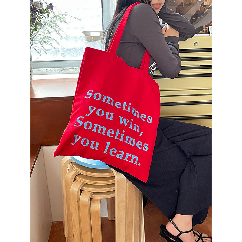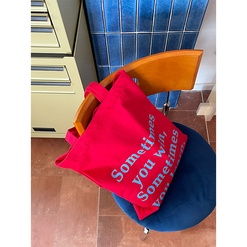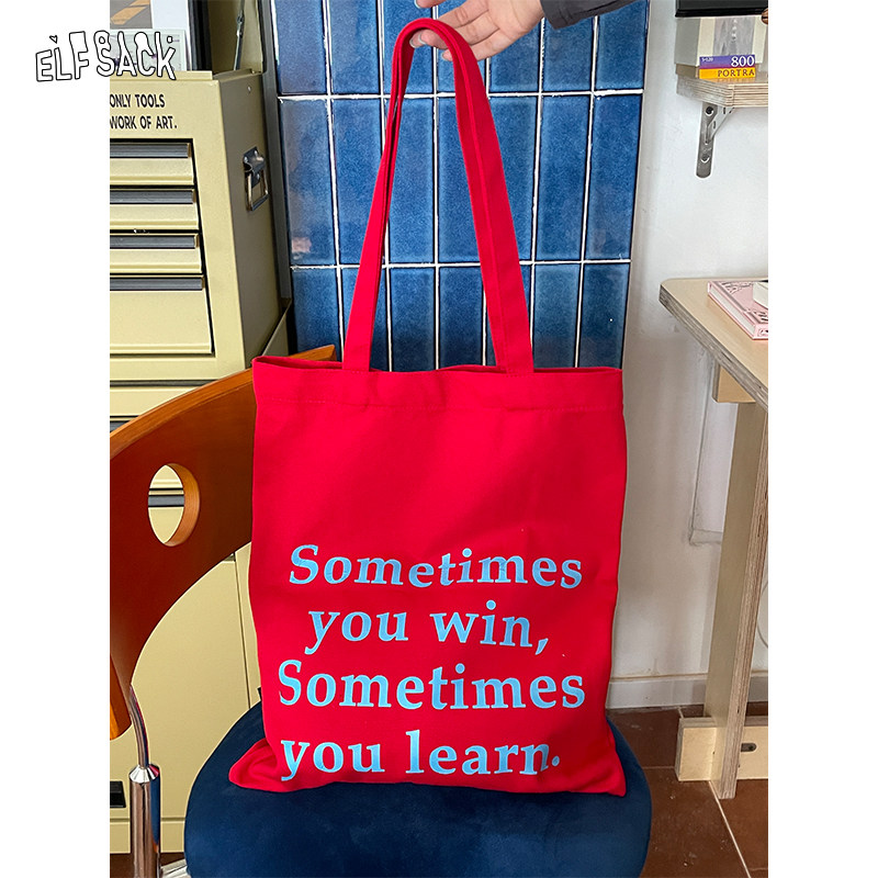 妖精的口袋红色字母帆布包2025年新款大容量时尚百搭慵懒风单肩包