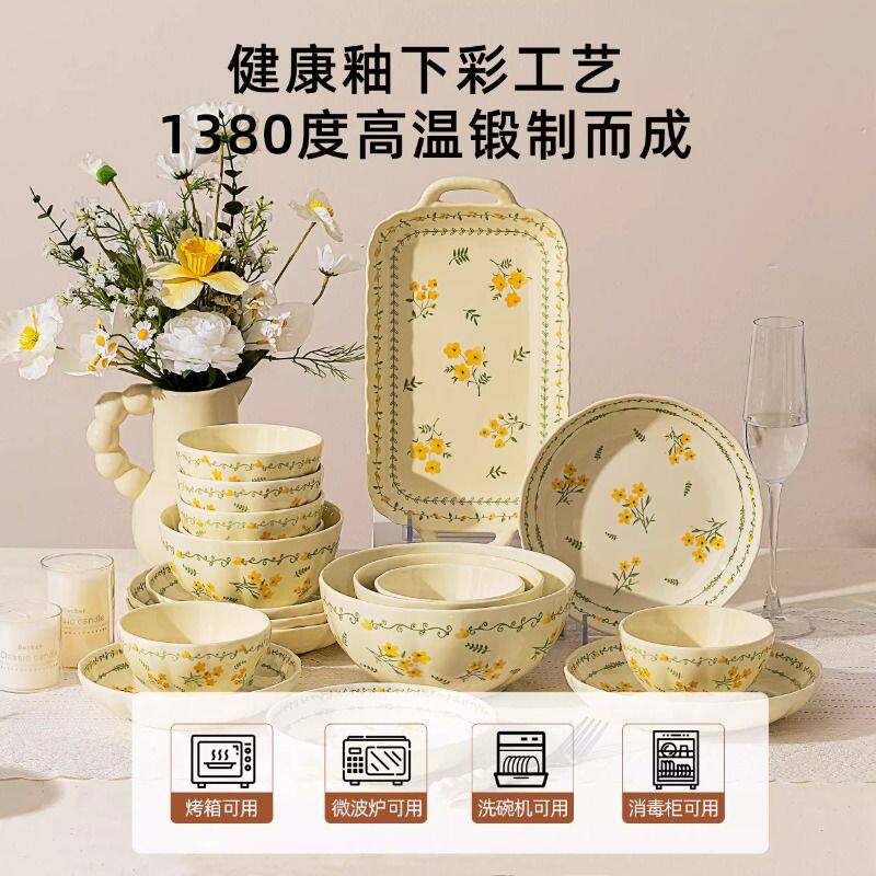 釉下彩陶瓷餐具套装家用2025新款碗碟盘子碗具日式乔迁新居碗盘筷