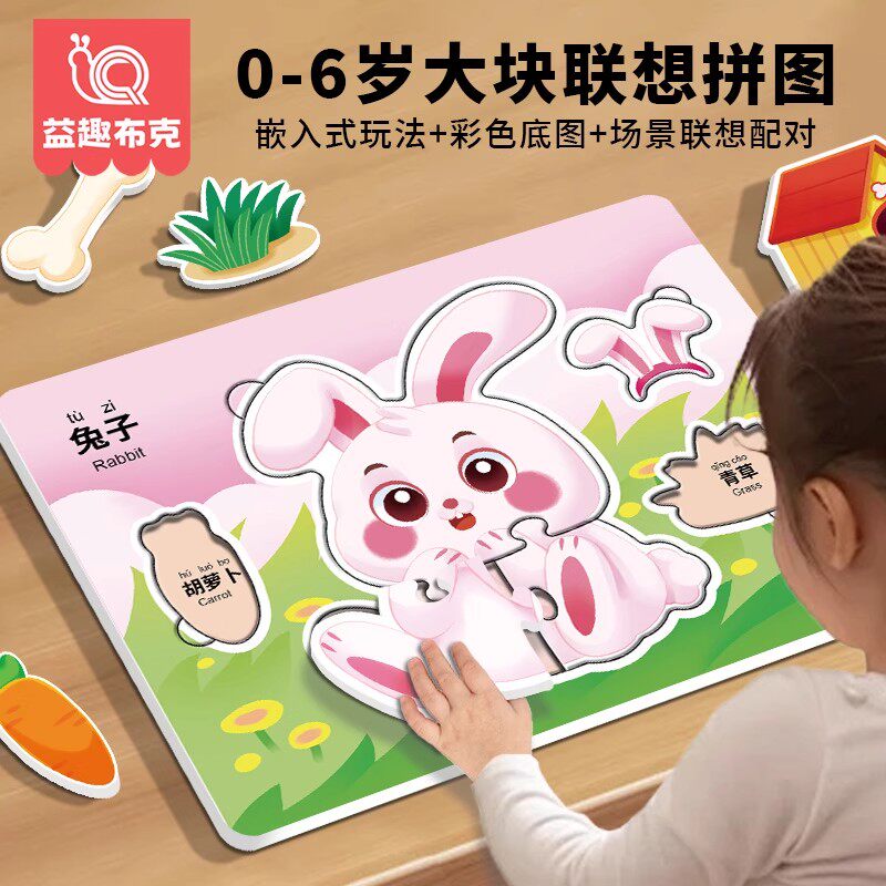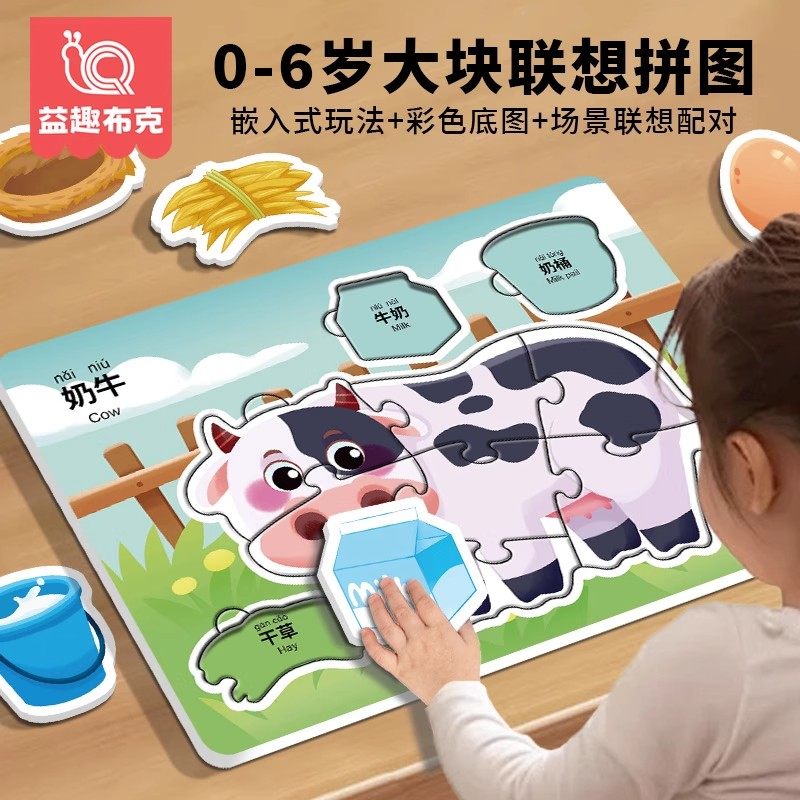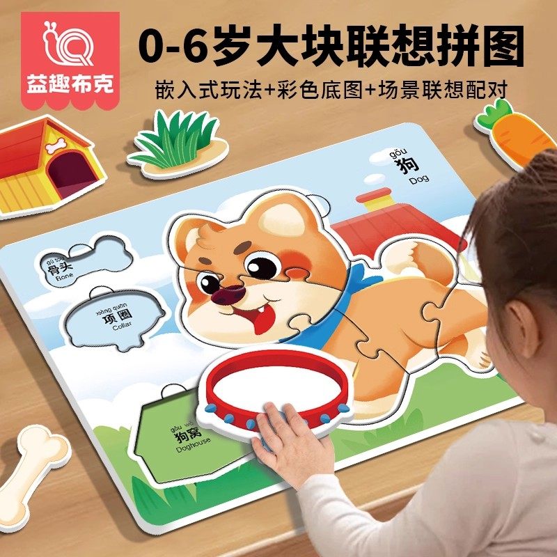 动物大块拼图0到3岁早教识字卡片3到6岁益智玩具儿童礼物配对认知