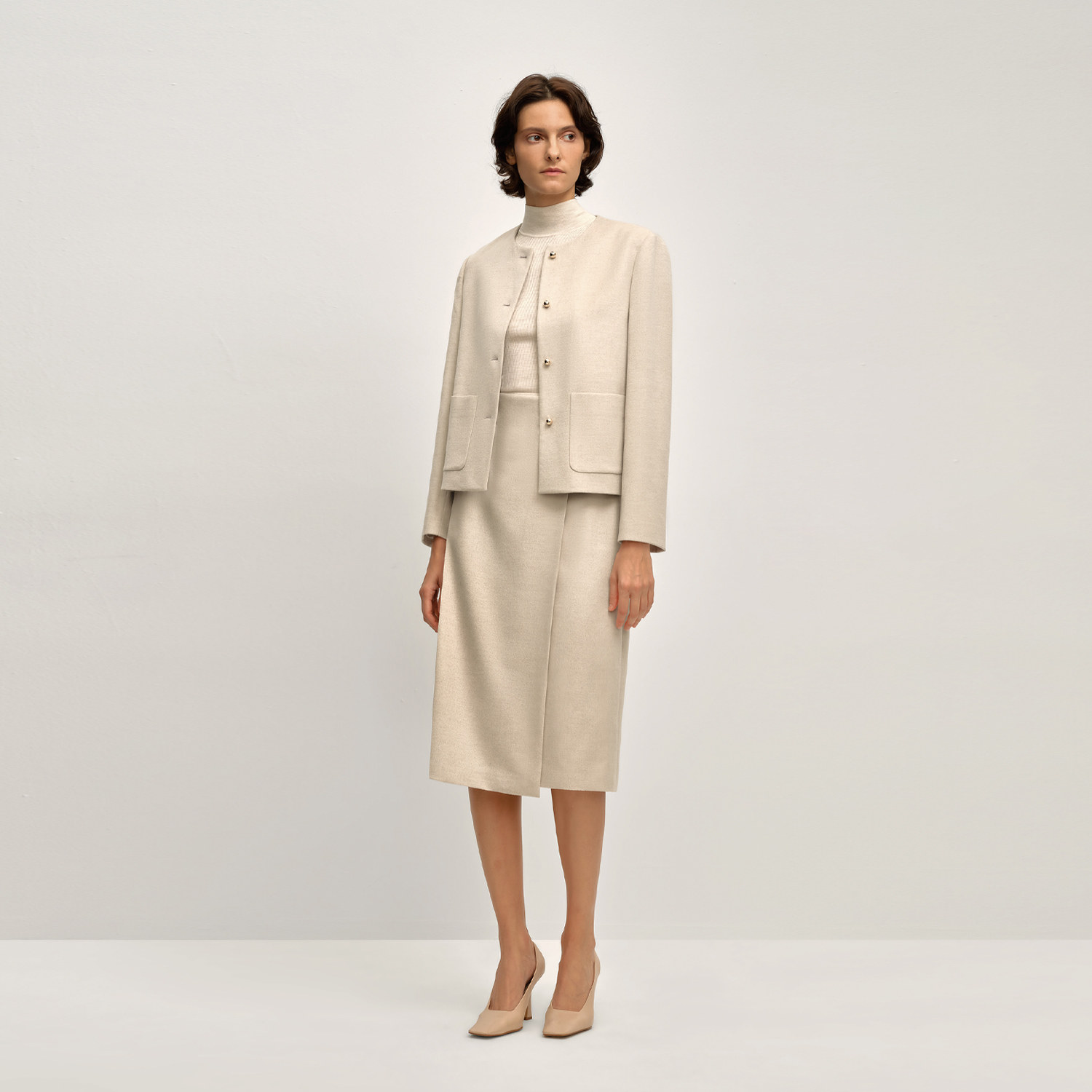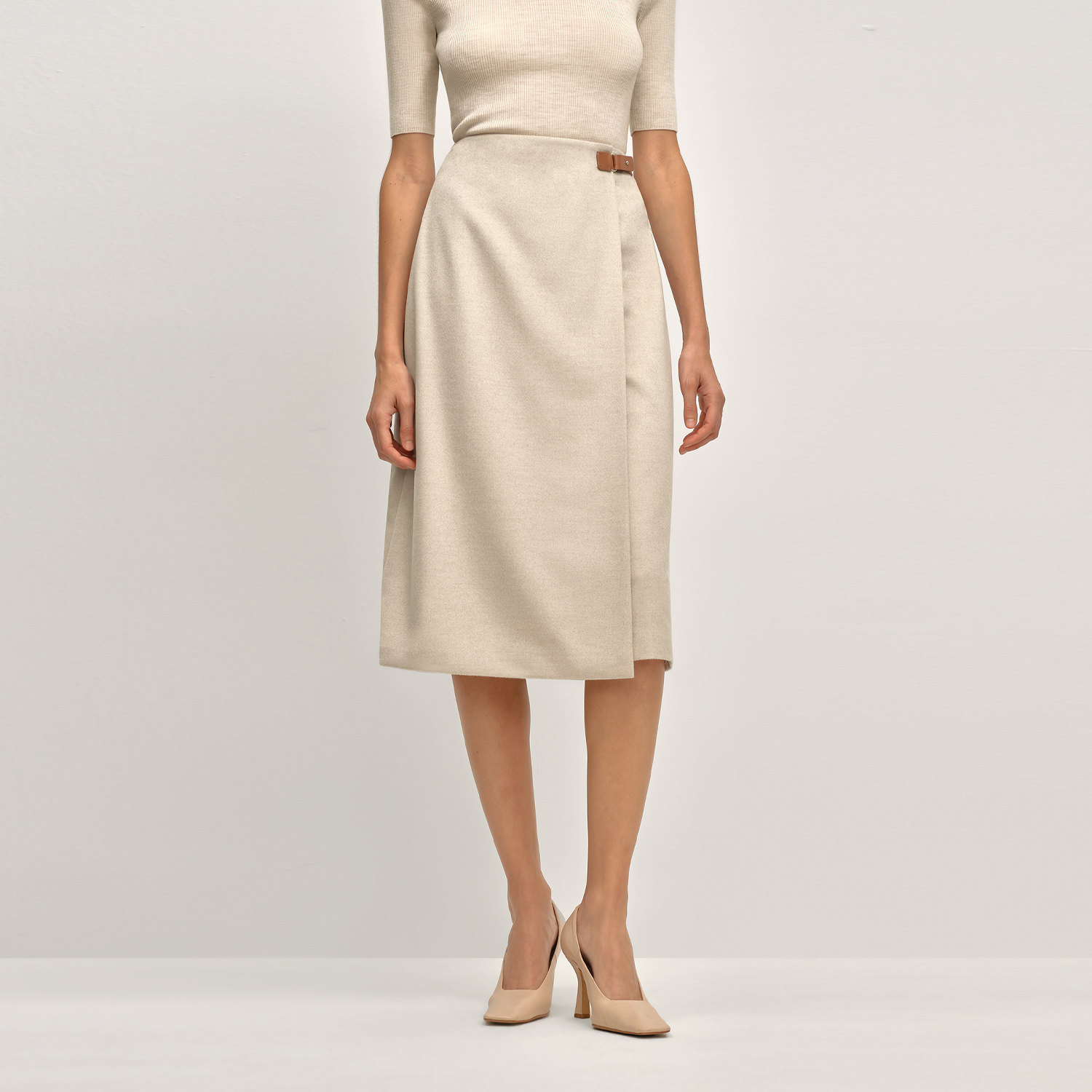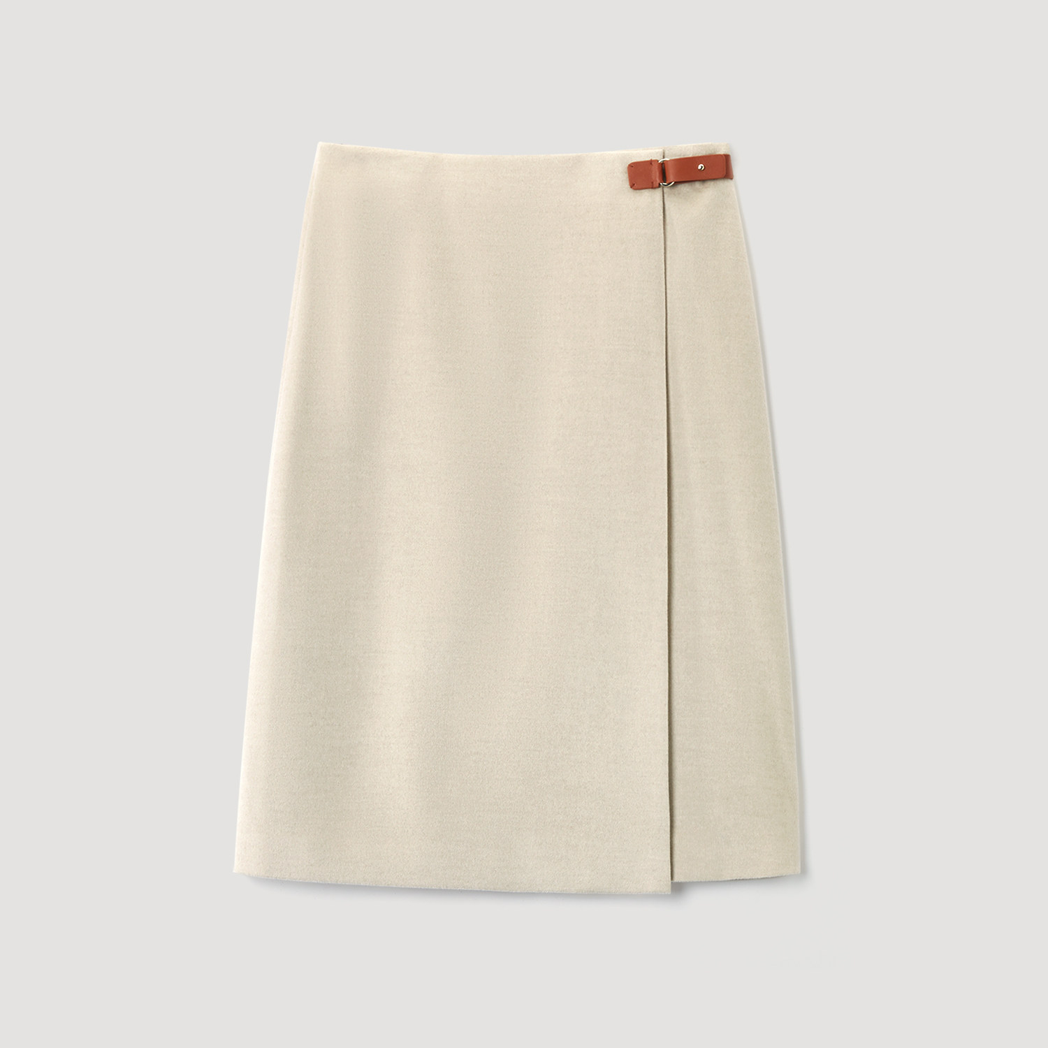 OVV2025秋冬新款女装简约撞色皮袢装饰不对称套装半身裙
