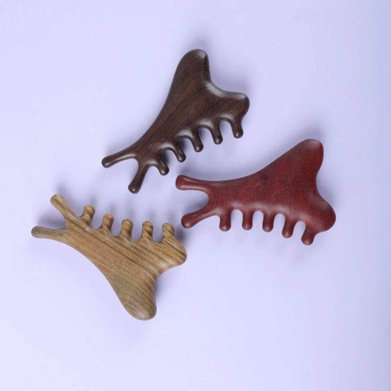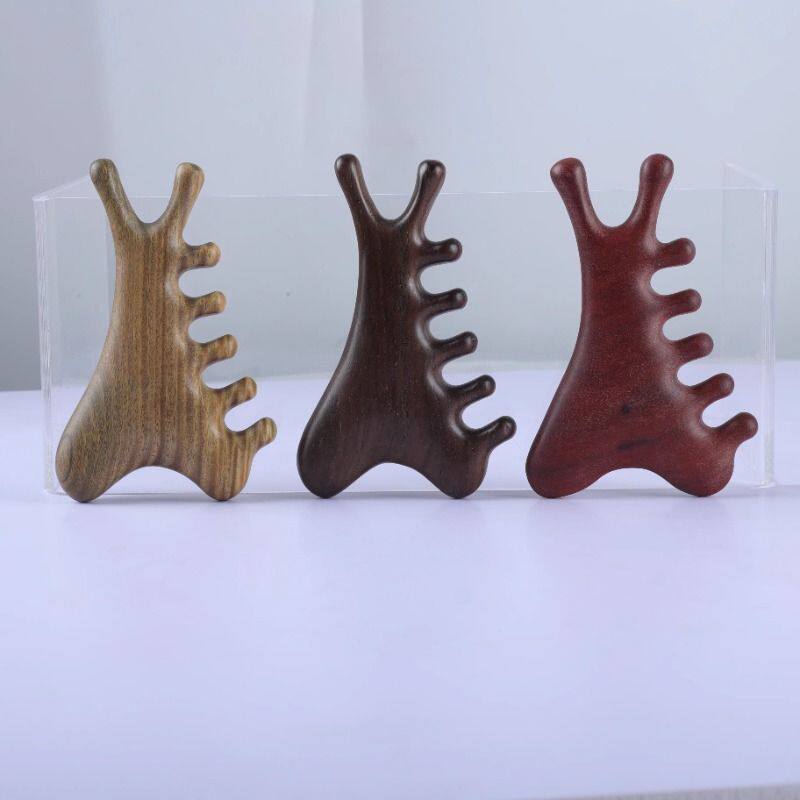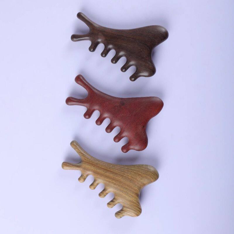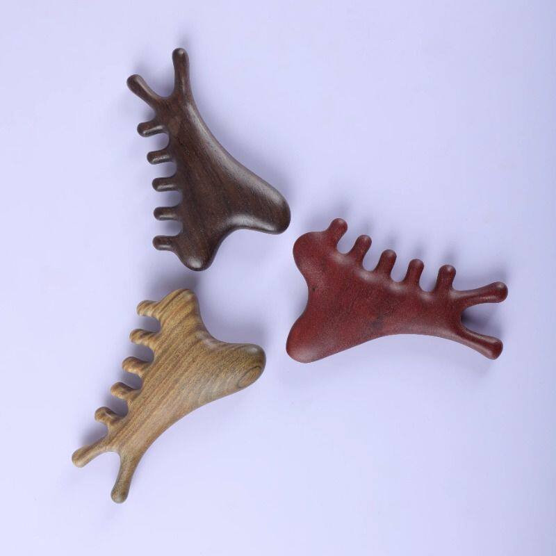 多功能四合一檀木梳头皮部疗刮痧疏通经络神器脸眼部按摩便携梳子
