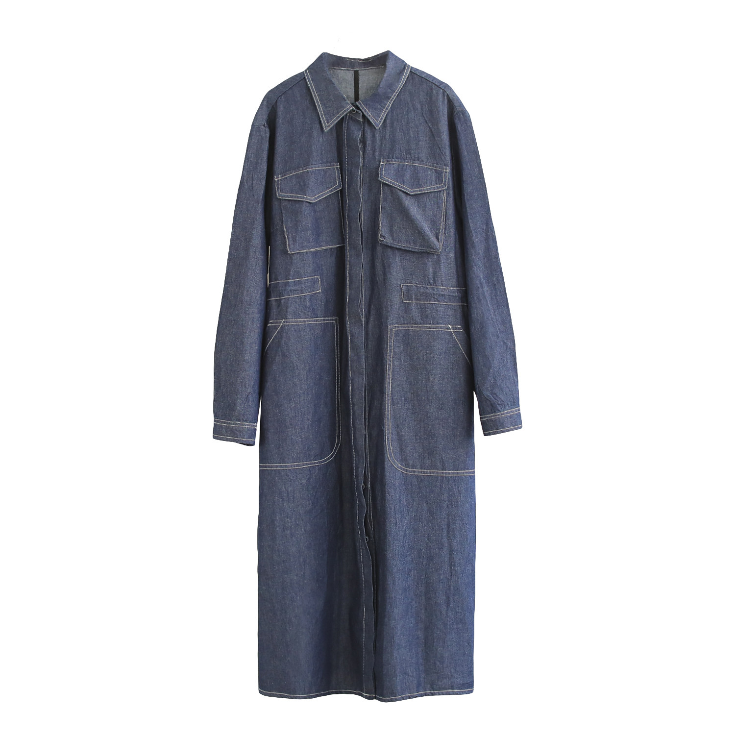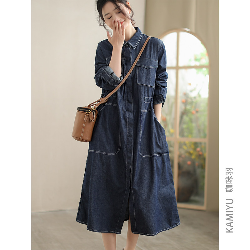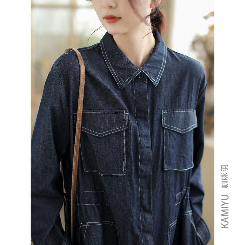 咖咪羽牛仔裙女春装新款时尚深蓝女士设计感韩版简约女装衬衫裙