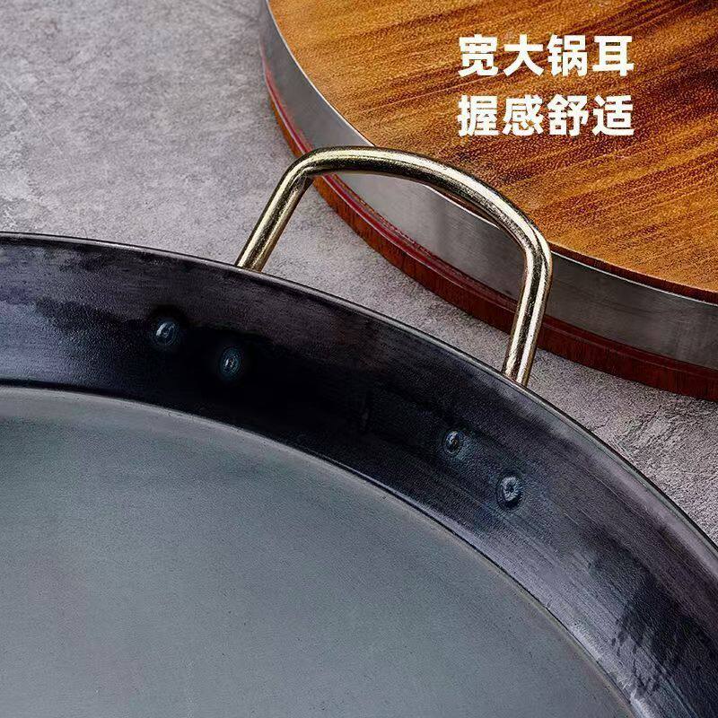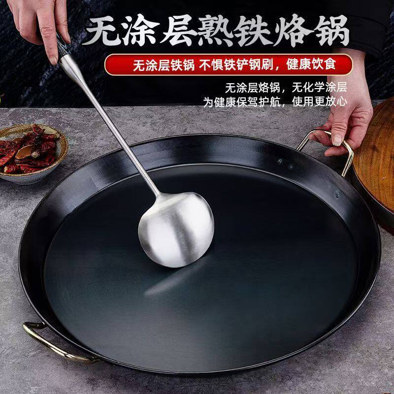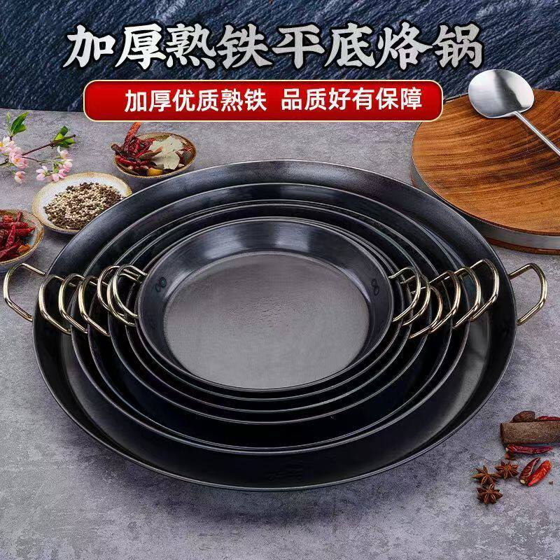 烙饼平底铁锅老式双耳烙煎锅商用摆摊专用锅电磁炉通用碳钢无涂层