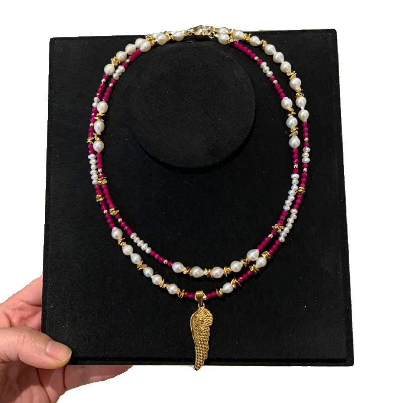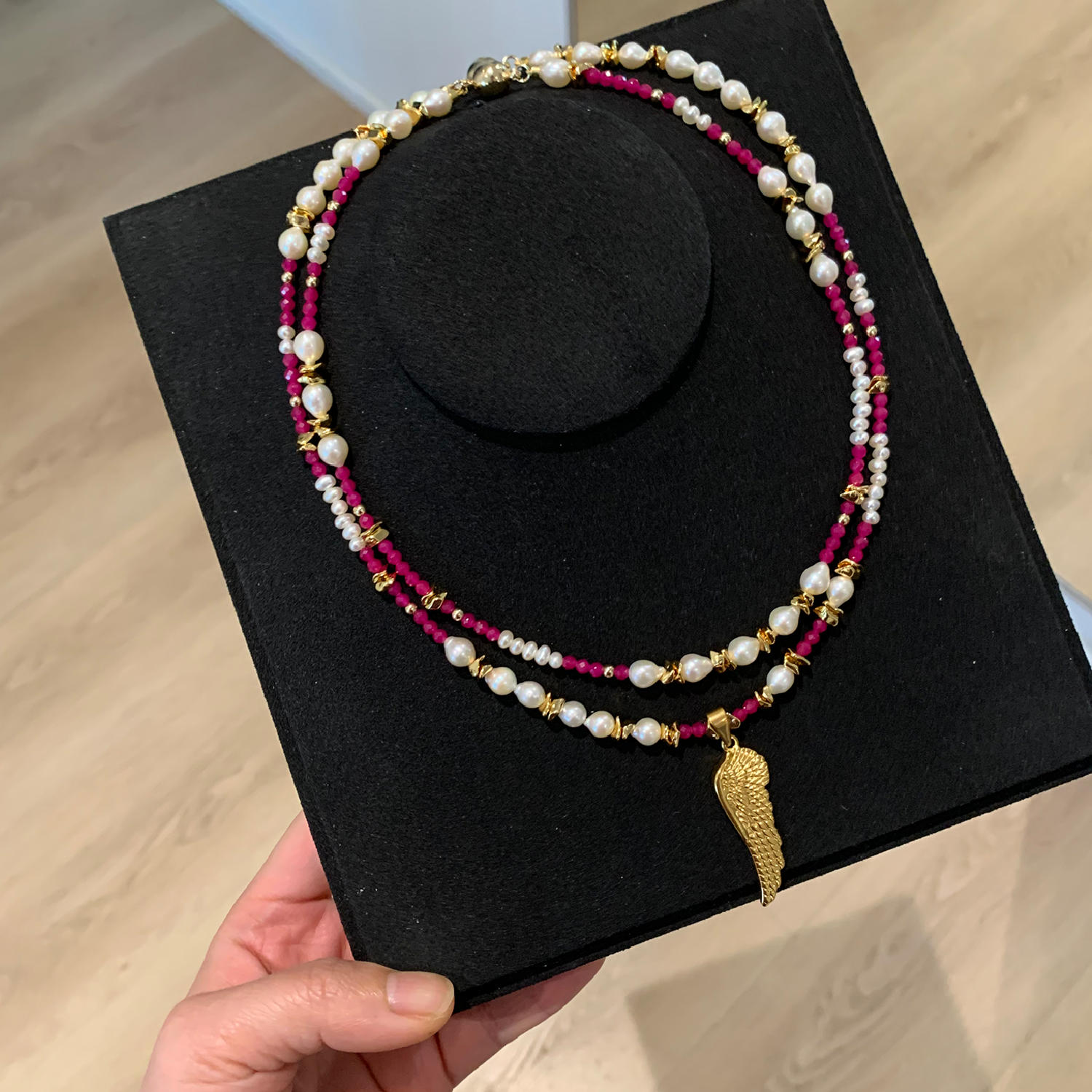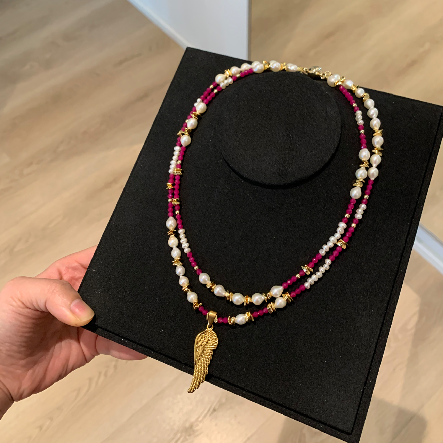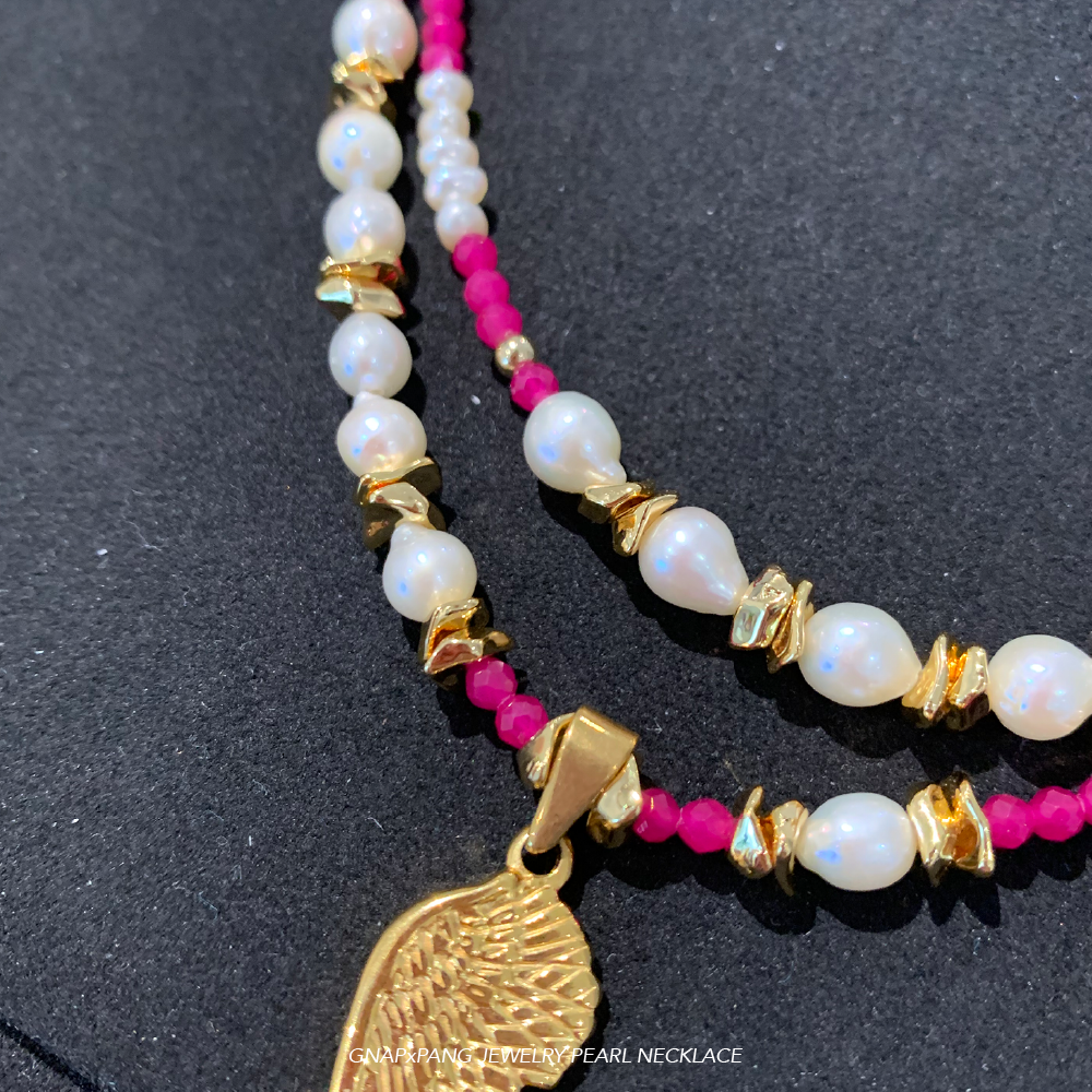 GNAPxPANG JEWELRY蒲甘塔日落红宝石淡水珍珠项链金块叠戴INS复古