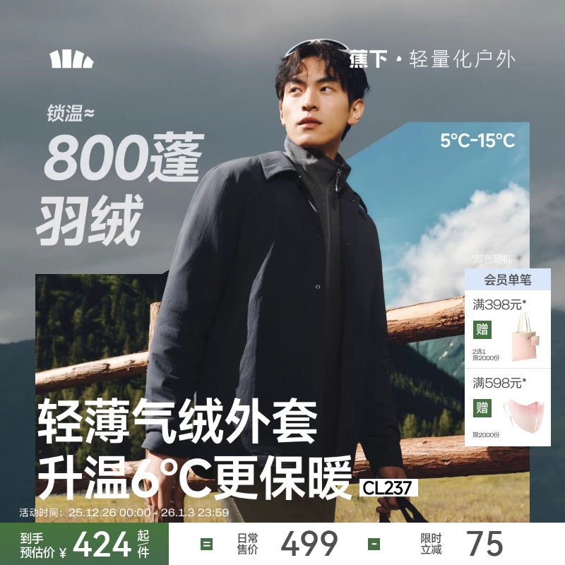 蕉下翻领气绒服男保暖防风耐磨夹克外套秋冬棉服可机洗羽绒服内胆