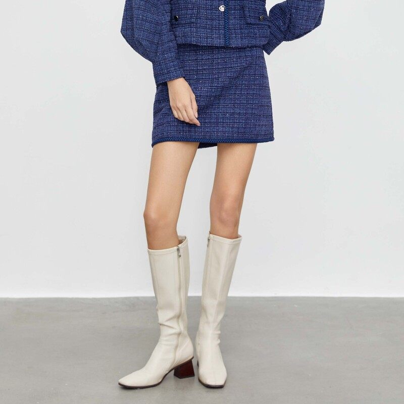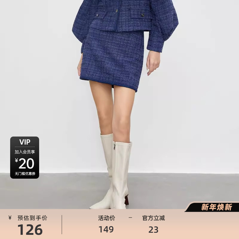 小香风短裙 撞色格纹 包臀版型