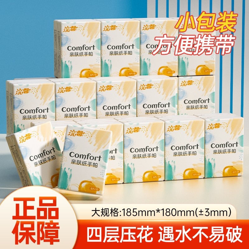 手帕纸6片装便携出行洁净无压力小方巾亲肤纸巾量贩装加厚实惠装