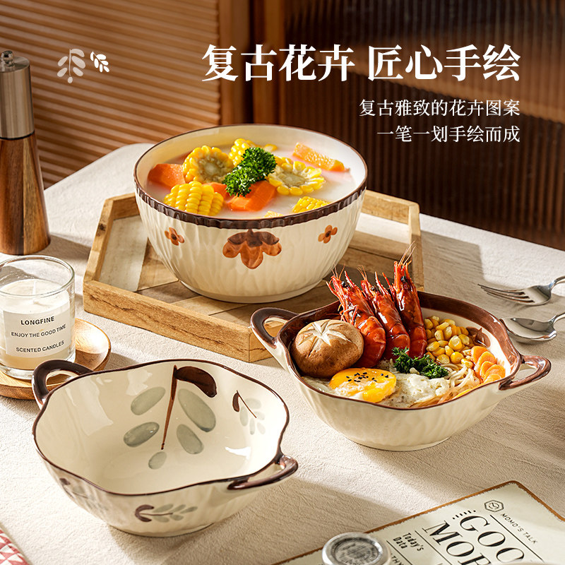 有风来双耳汤碗陶瓷泡面碗家用2025新款汤面大碗螺蛳粉碗日式餐具