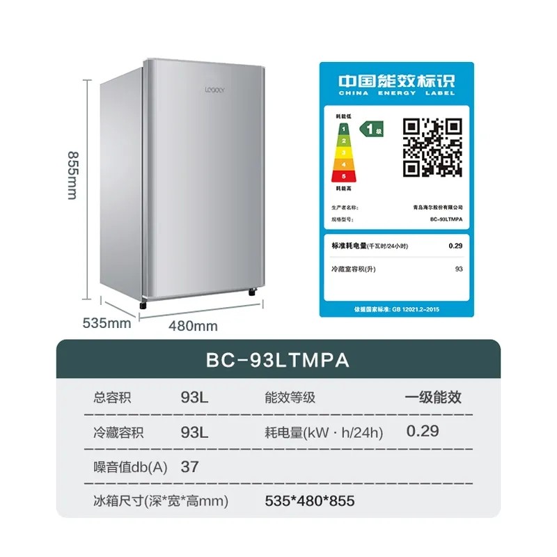 海尔智家出品小冰箱93升家用冰箱一级能效单门冷藏带微冷冻室正品