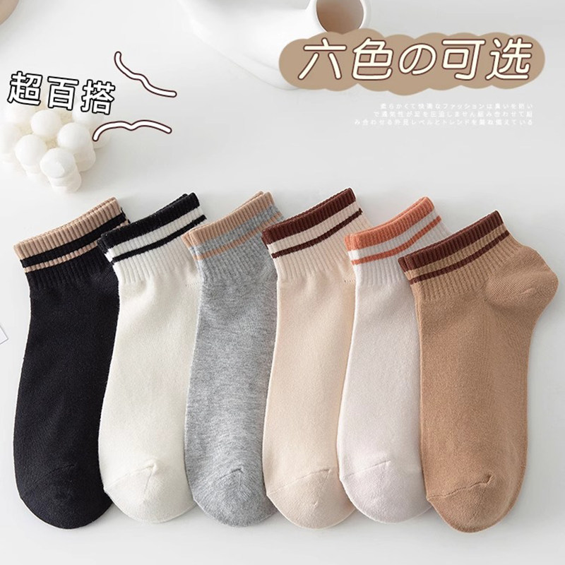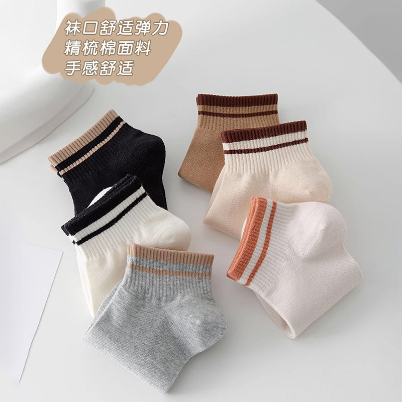 袜子女士短袜吸汗防臭短筒袜纯棉袜春秋季女袜运动款拼色百搭船袜