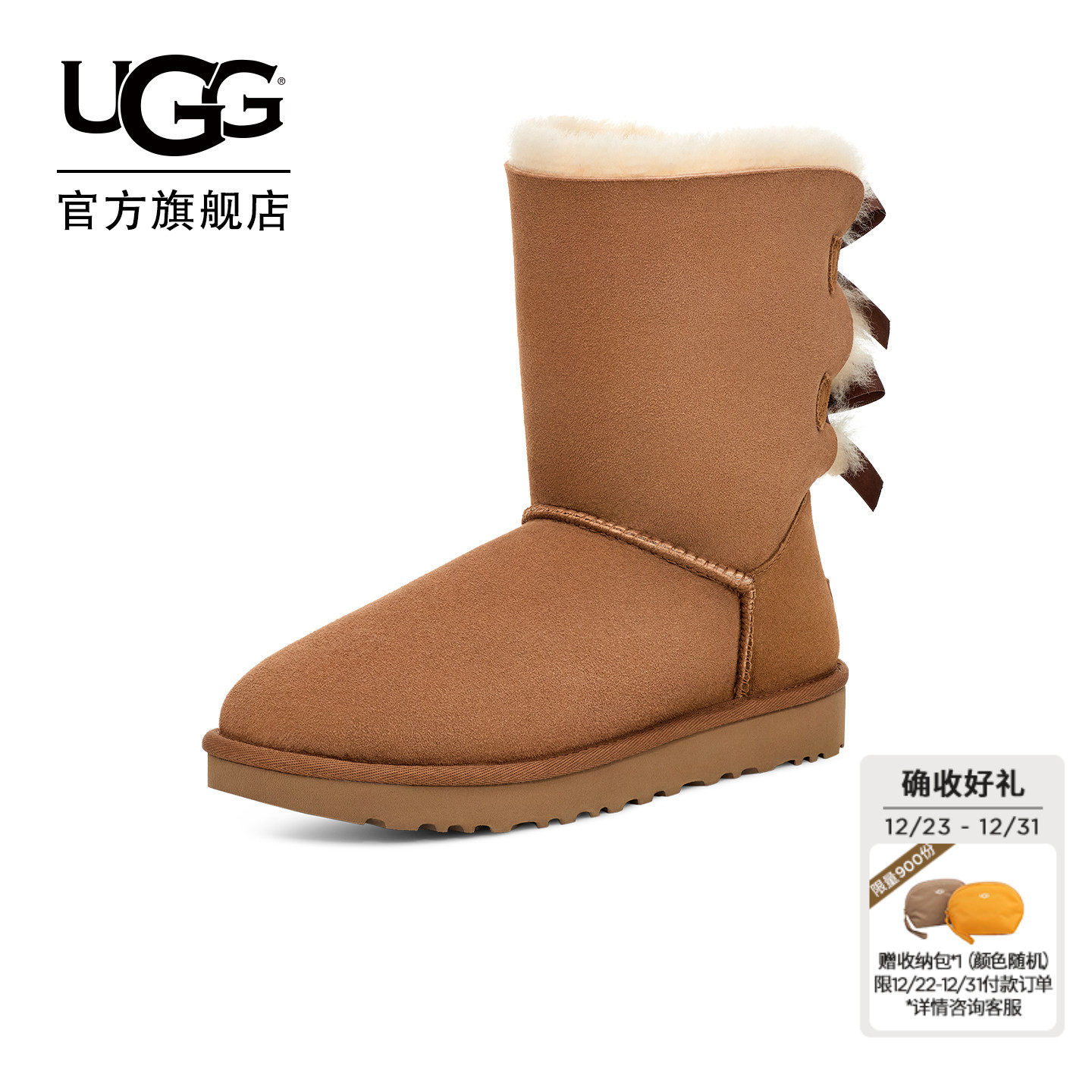 UGG秋冬女士时尚舒适平底圆头蝴蝶结纯色短靴休闲雪地靴 1016225