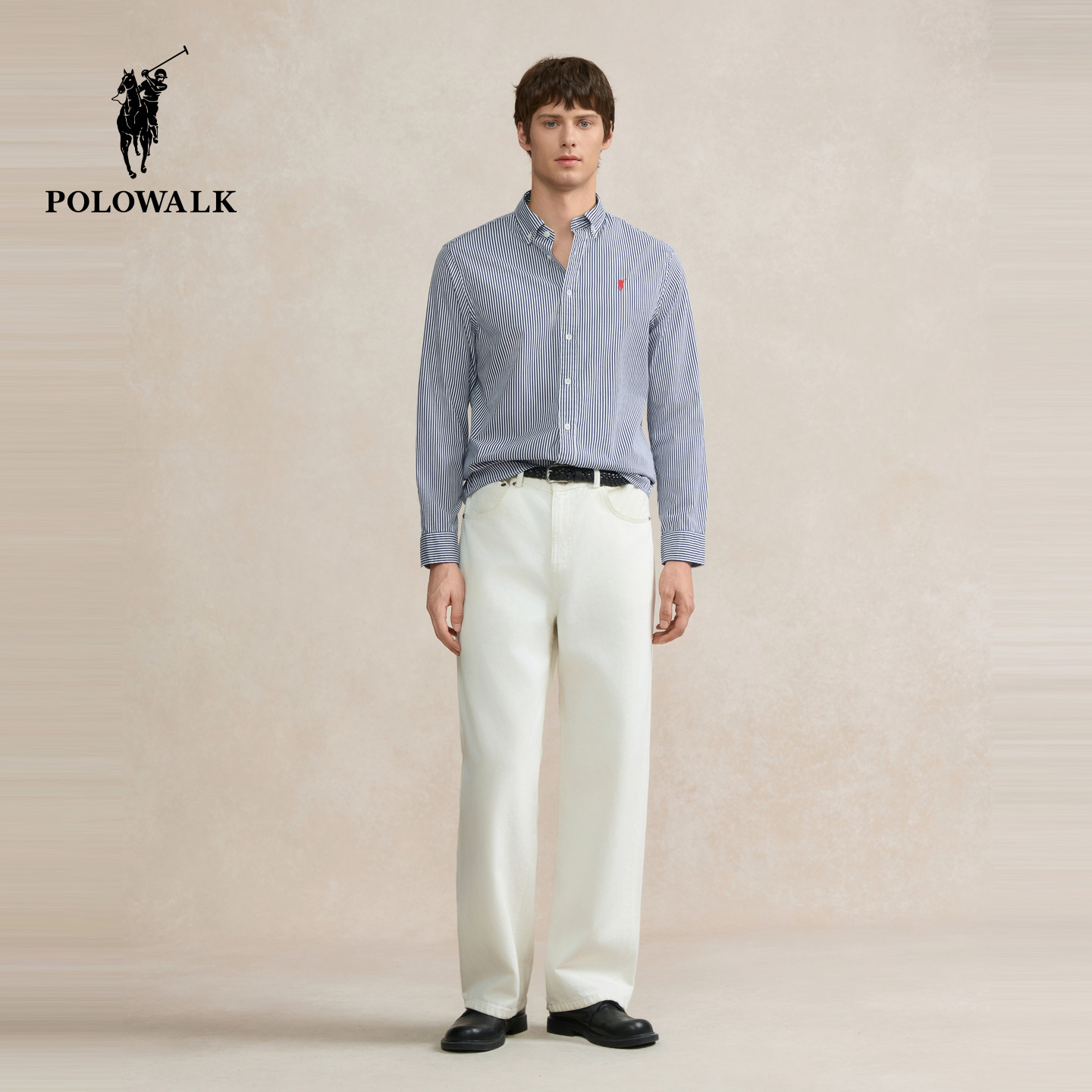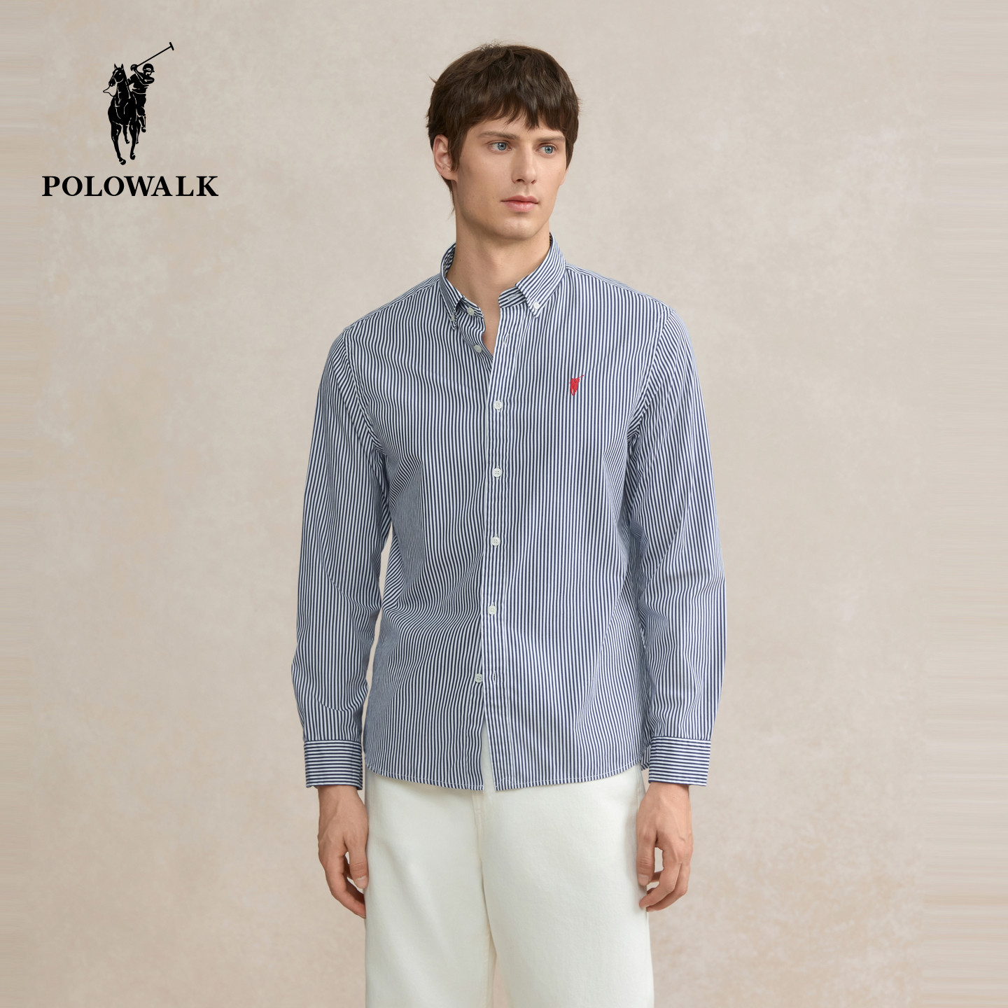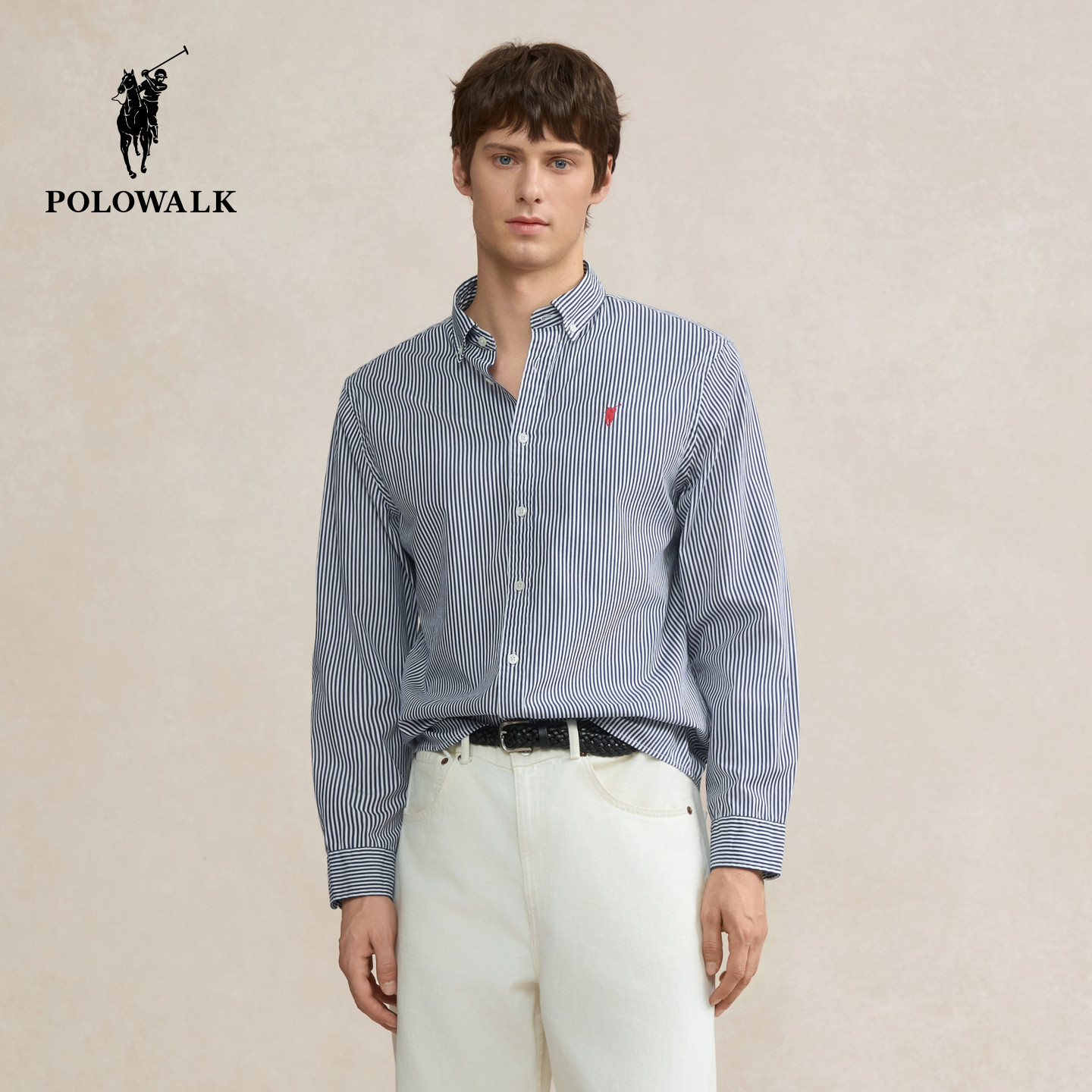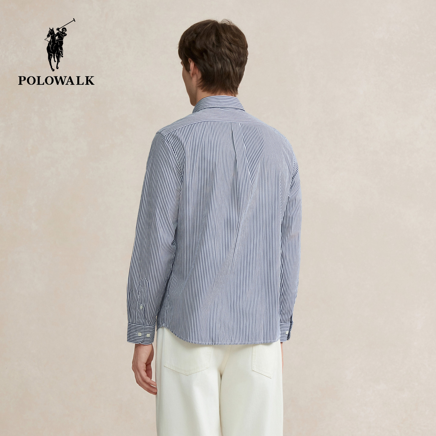 【100%纯棉】POLOWALK男装长袖衬衫2025秋季新品条纹翻领衬衣男式