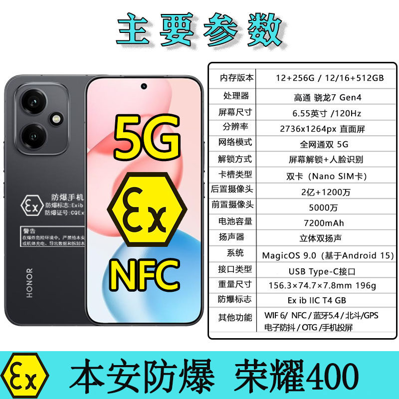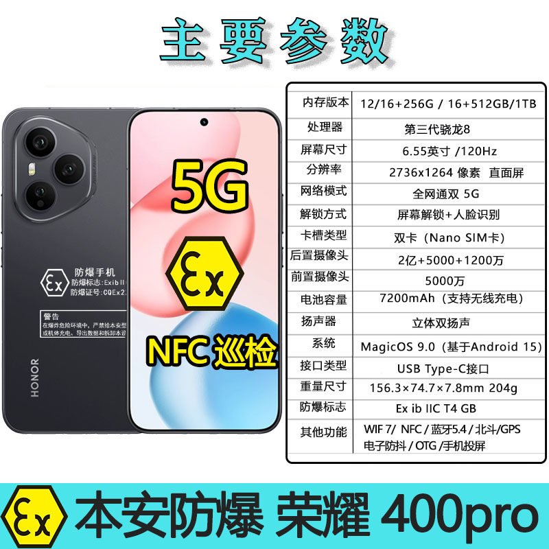 honor/荣耀 荣耀400 5G 防爆智能手机本安EX化工厂天然气油站专用