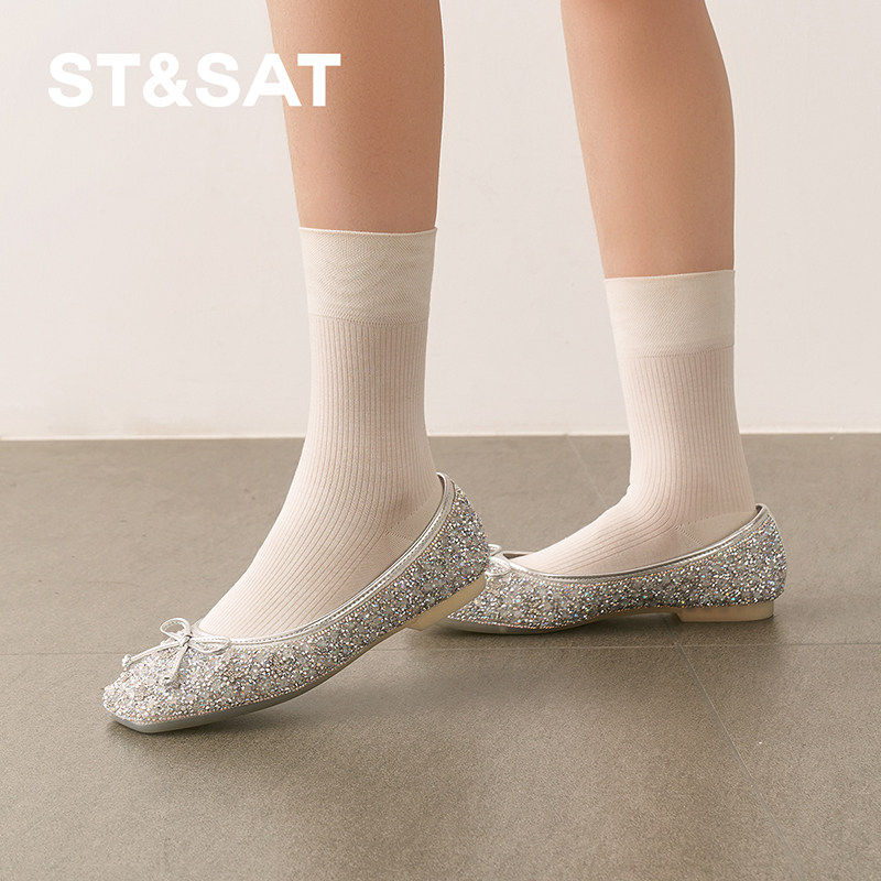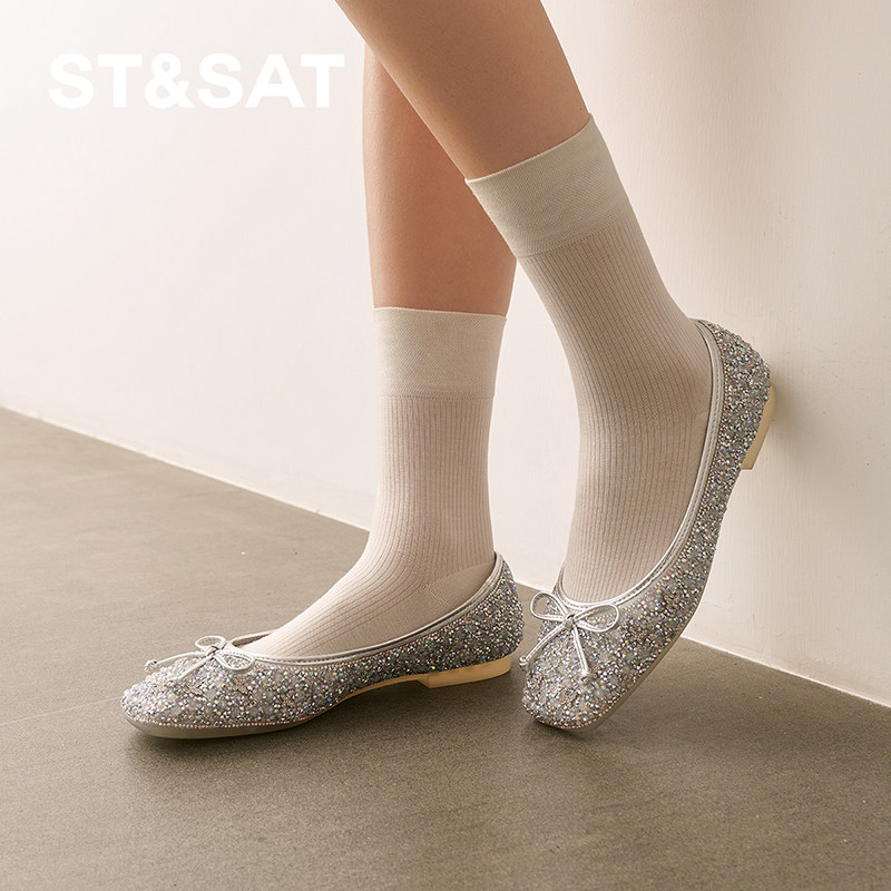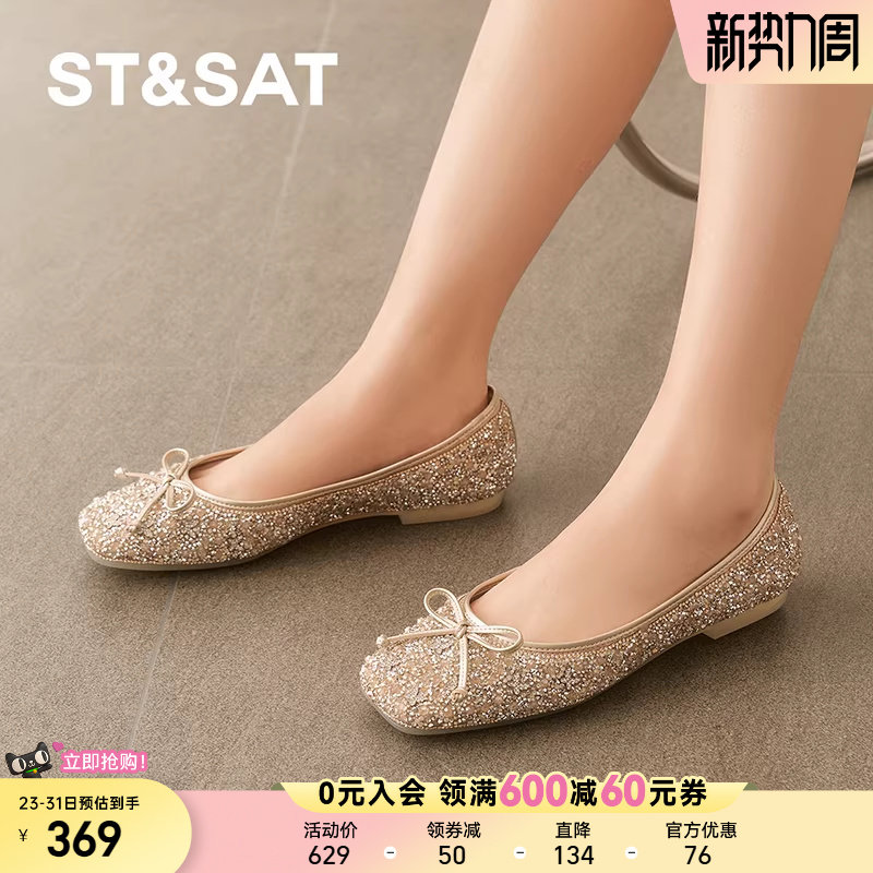 星期六时尚款浅口单鞋简约风优雅春季蝴蝶结系带平底鞋SSD1111059