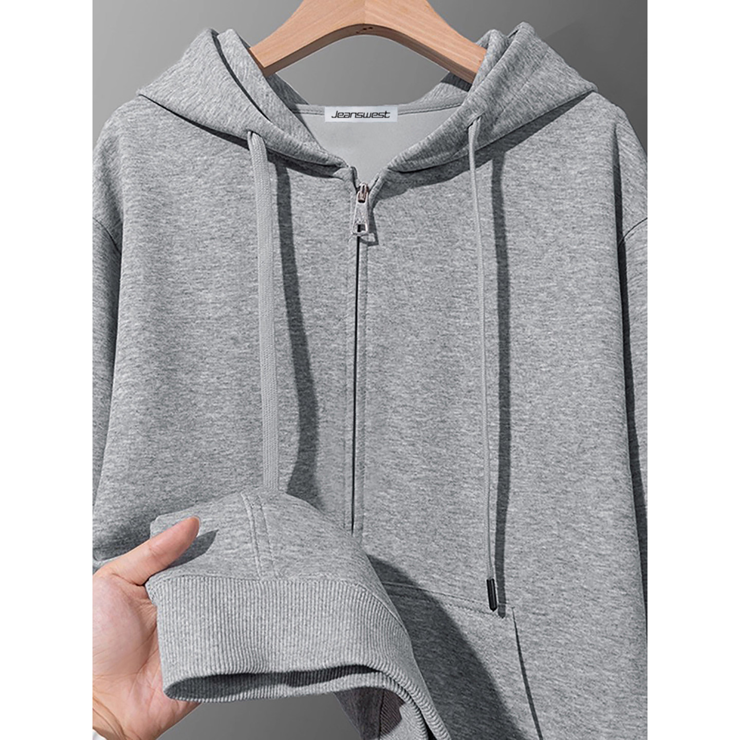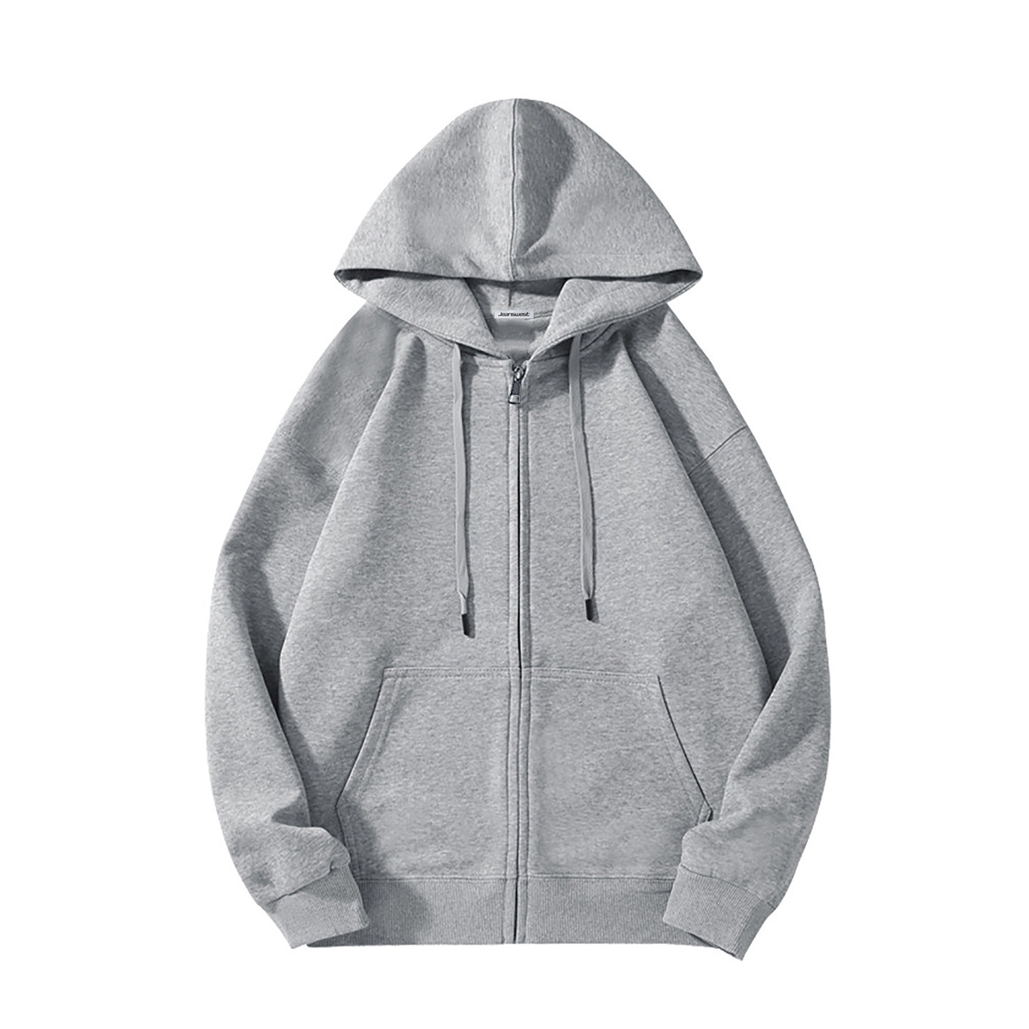 NG真维斯开衫连帽卫衣男女款秋冬季美式重磅纯色拉链加绒休闲外套