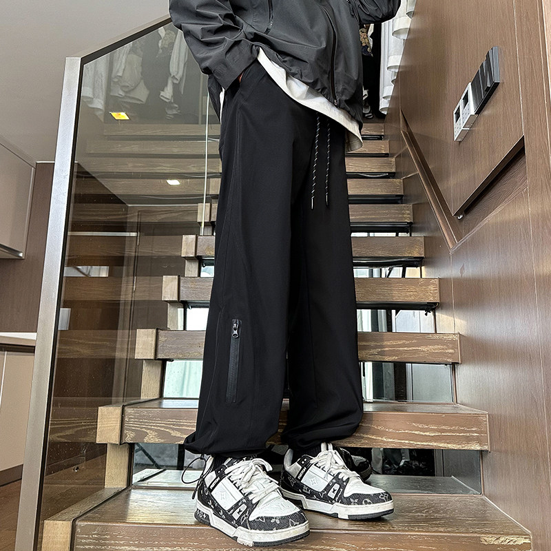 NG真维斯阔腿裤男士秋季2025新款潮流宽松黑色百搭工装休闲长裤子
